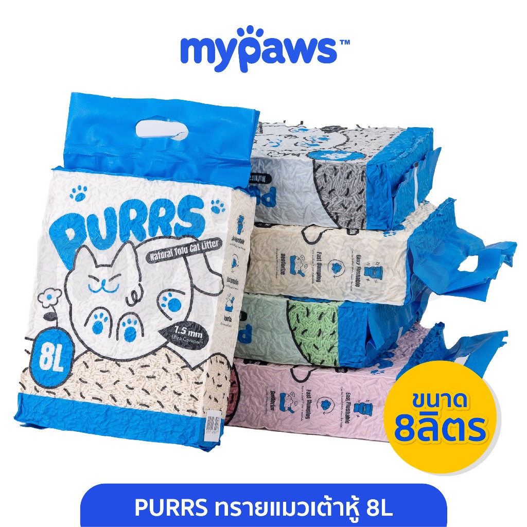 [?PAYDAY ลดสูงสุด 150.-]My Paws Purrs ทรายแมวเต้าหู้ 8ลิตร ละลายน้ำได้ ทิ้งลงชักโครกได้