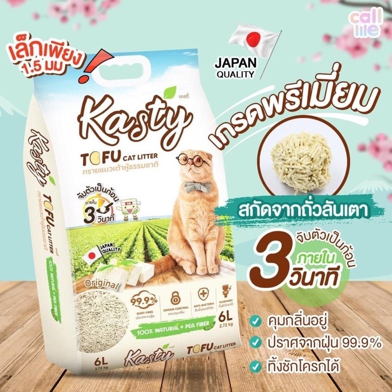 [6 ลิตร] Kasty ทรายแมว ทรายเต้าหู้แคสตี้ ทรายเต้าหู้ธรรมชาติ จับตัวเป็นก้อนเร็ว