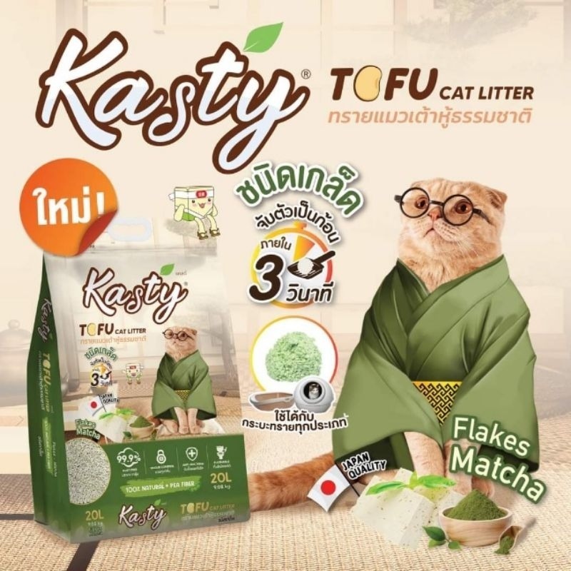 [ขนาด20ลิตร] Kasty ทรายเต้าหู้ ถั่วลันเตา ทรายแมวเต้าหู้ ธรรมชาติ 100% ทิ้งลงชักโครกได้.