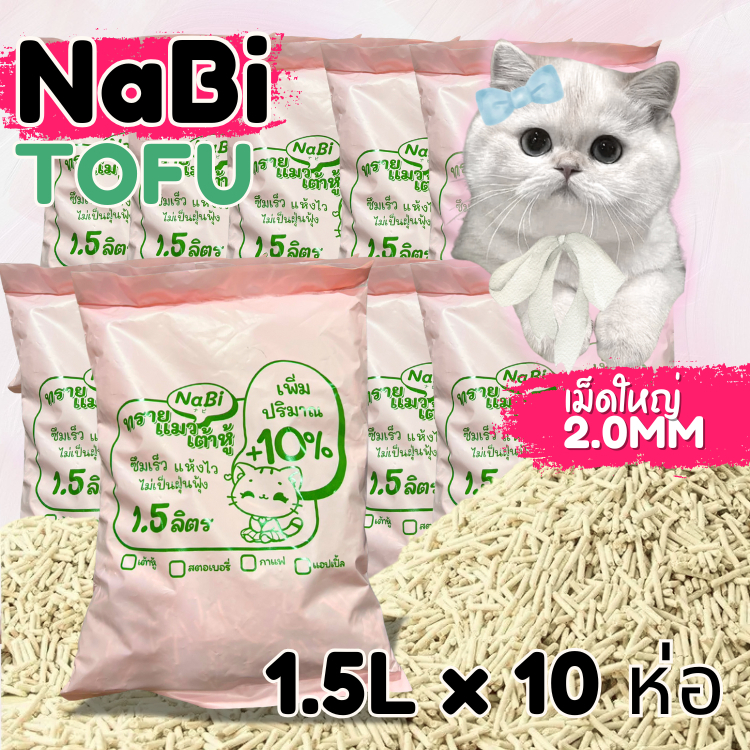 [10 ถุง] NaBi TOFU เพิ่มปริมาณทรายให้อีก 10% ทรายแมวเต้าหู้ ทรายแมวธรรมชาติ บรรจุ 10 ห่อ แบ่งใช้สะดวก 1ถุงบรรจุ 1.5L