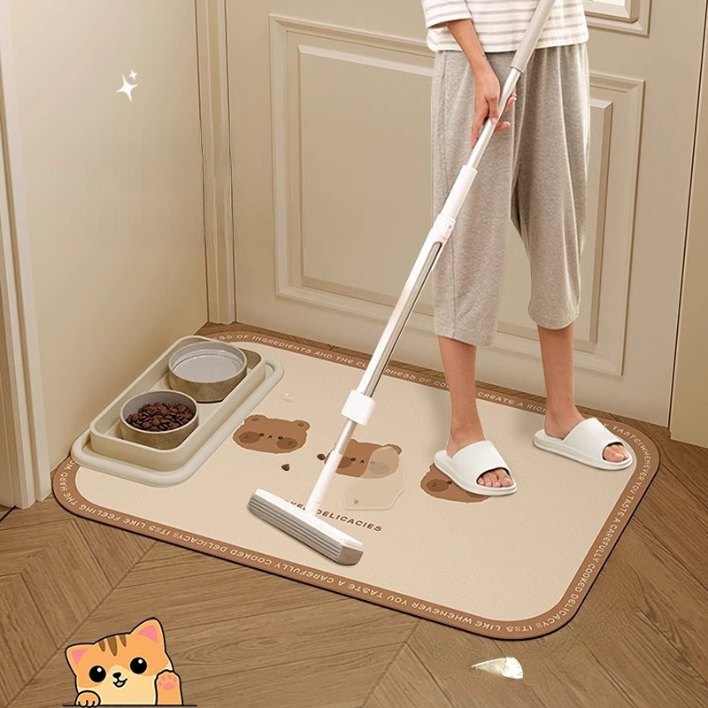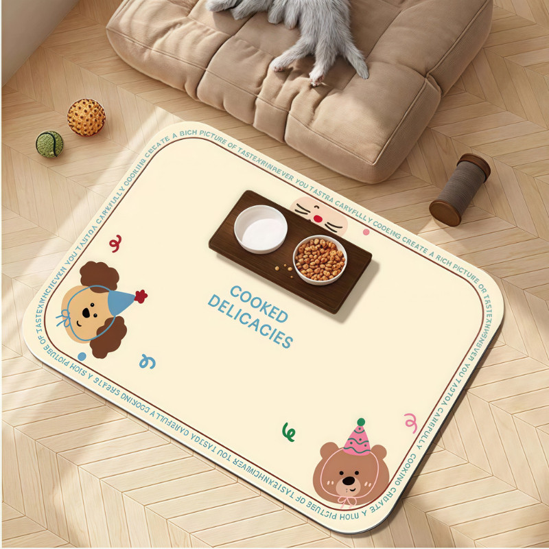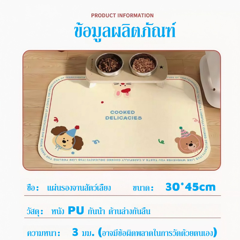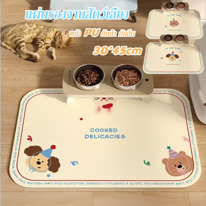 AimayaPet สัตว์เลี้ยงถาดอาหาร แผ่นรองจานสัตว์เลี้ยง กันลื่น หนัง PU ล้างง่าย ทนทาน แผ่นกันอาหารหก