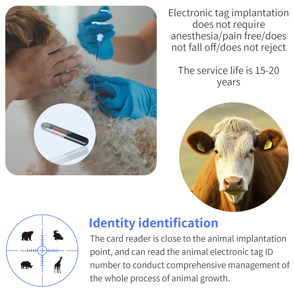 ⭐100pcs 2.12X12/1.4X8mm/1.25x7mm microchip + syring dog cat pic วัวสัตว์ชิป EM4305 134.2khz