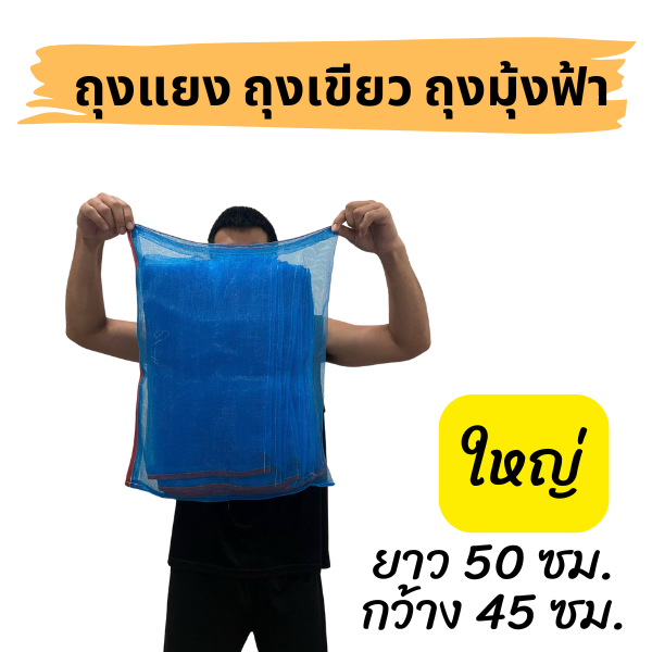 (แพ็ค5, 10ใบ) ถุงแยง ถุงเขียว ถุงมุ้งฟ้า ราคาถูก ใส่ปลา ใส่กบ ไซส์จิ๋ว/เล็ก/ใหญ่/จัมโบ้