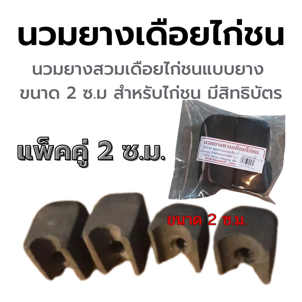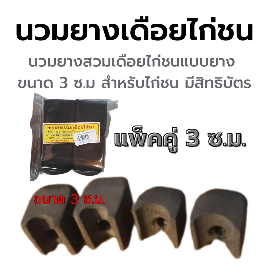 นวมยางสวมเดือยไก่ชนแบบยาง ขนาด 2 ซ.ม. และ 3 ซ.ม. มีรูล็อคตอด้วย ป้องกันตอหัก หรือหลุด สำหรับไก่ชน