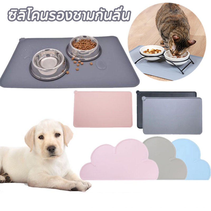 ซิลิโคนรองชามกันลื่น ผ้ายางรองอาหารหมาแมว ไม่หกเลอะเทอะ แผ่นรองชามอาหารสุนัข