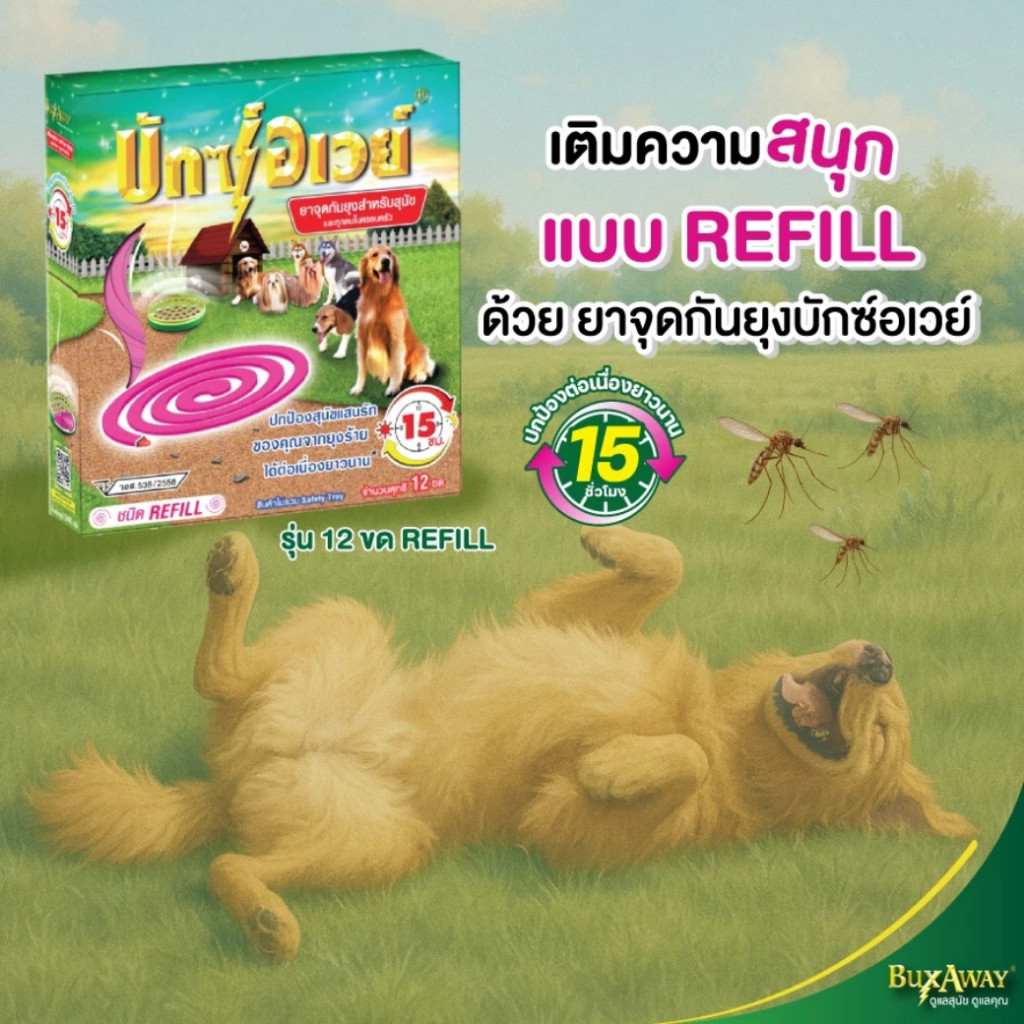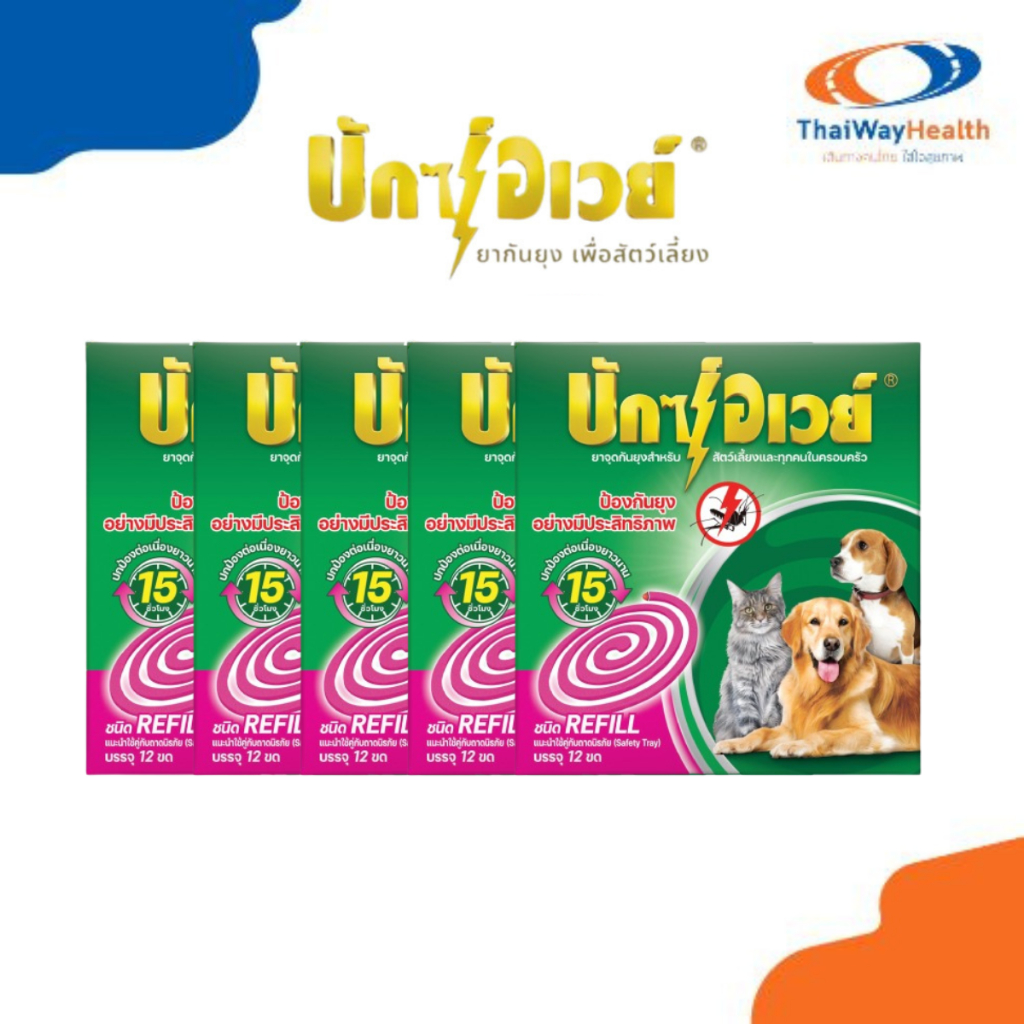 บักซ์อเวย์ 60 ขด ( 5กล่อง) รุ่น รีฟิล ไม่มีถาด ยาจุดกันยุง สำหรับสัตว์เลี้ยง