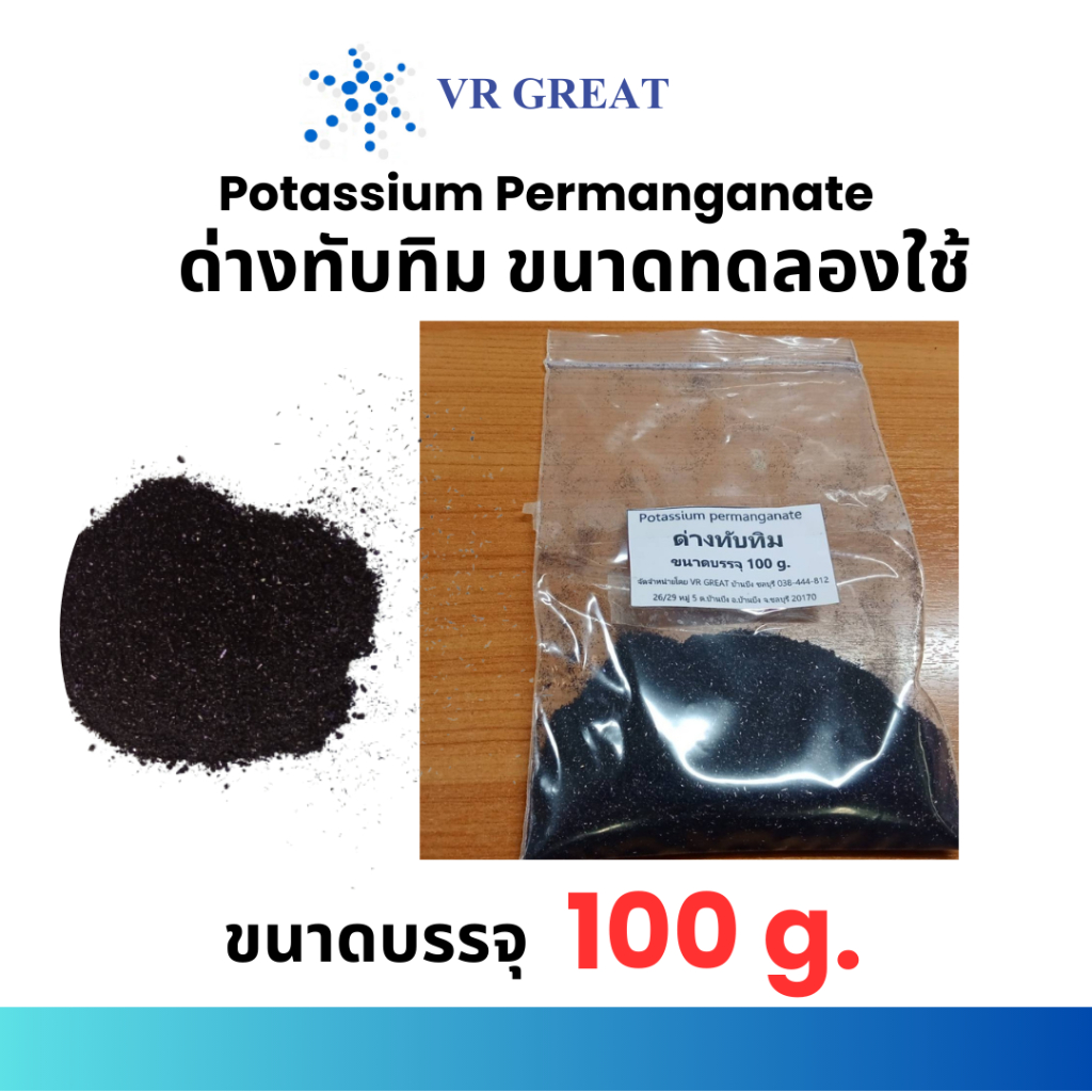 ด่างทับทิม Potassium Permanganate ขนาดทดลองใช้ 100 กรัม ฆ่าเชื้อโรค ล้างผักผลไม้