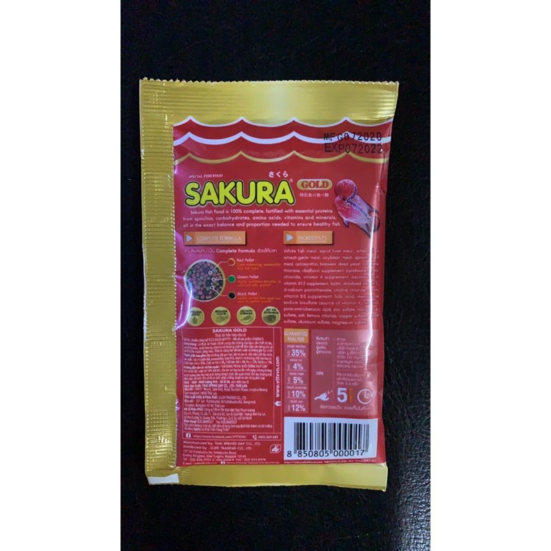 ?EXP.2027?ยกลัง ราคาพิเศษ❗?Zip Lock 500g.?สูตรใหม่!! อาหารปลาซากุระ Sakura Gold ขนาด 500g. 12 ซอง