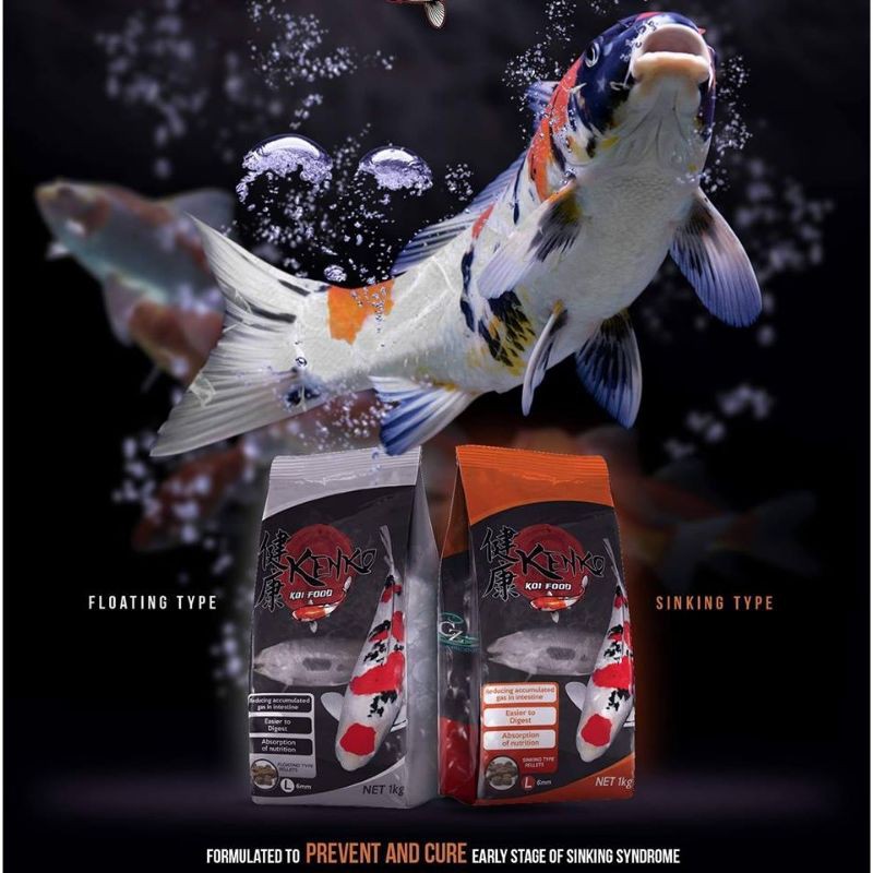 ? อาหารปลาคาร์ฟ Kenko koi food เม็ดจม/เม็ดลอย ขนาดถุง 1 กก.
