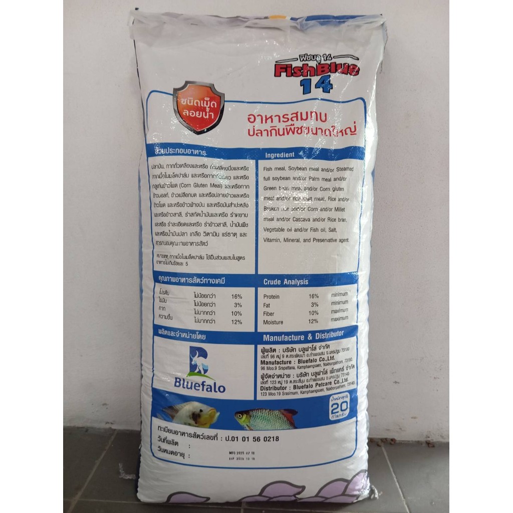 { ขนาด 20 กิโล (n) } FISH BLUE 14 อาหารปลากินพืชขนาดใหญ่ ชนิดเม็ดลอยน้ำ โปรตีน 16% . #FB01