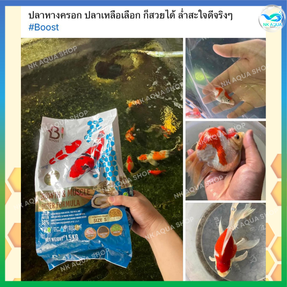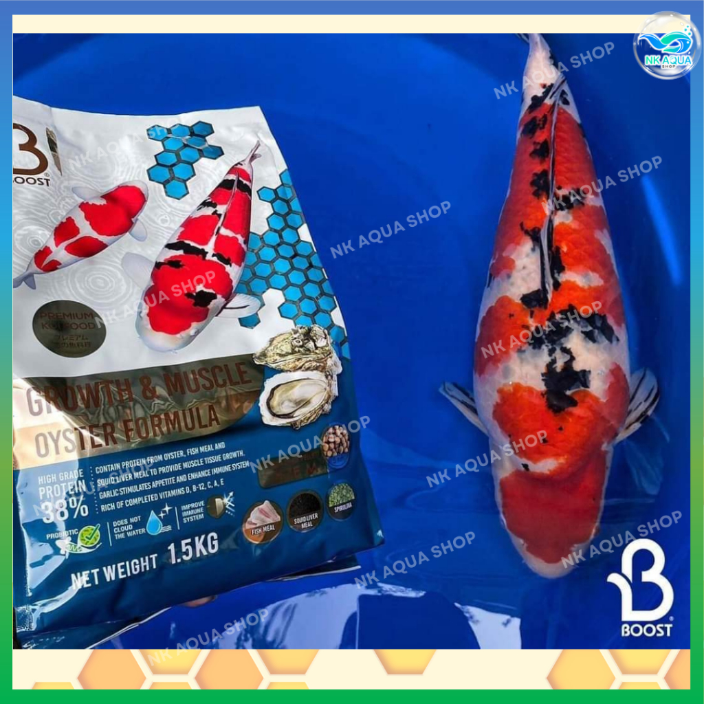 ?+เพิ่มปริมาณ 150g.?อาหารปลาคาร์ฟ BOOST KOI สูตรน้ำผึ้ง?และสูตรหอยนางรม?เร่งโต เร่งล่ำ?1.5 kg.