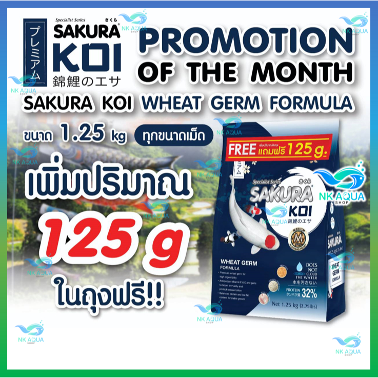 ?วีทเจิร์ม ฟรี❗125 g.?อาหารปลาคาร์ฟ Sakura Koi (ซากุระ โค่ย) สูตร?วีทเจิร์ม ขนาด 1.25 กก.ฟรี 125g.