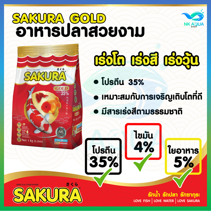 ?ล็อตใหม่?สูตรใหม่!! อาหารปลาซากุระ Sakura Gold ขนาด 1 กก.