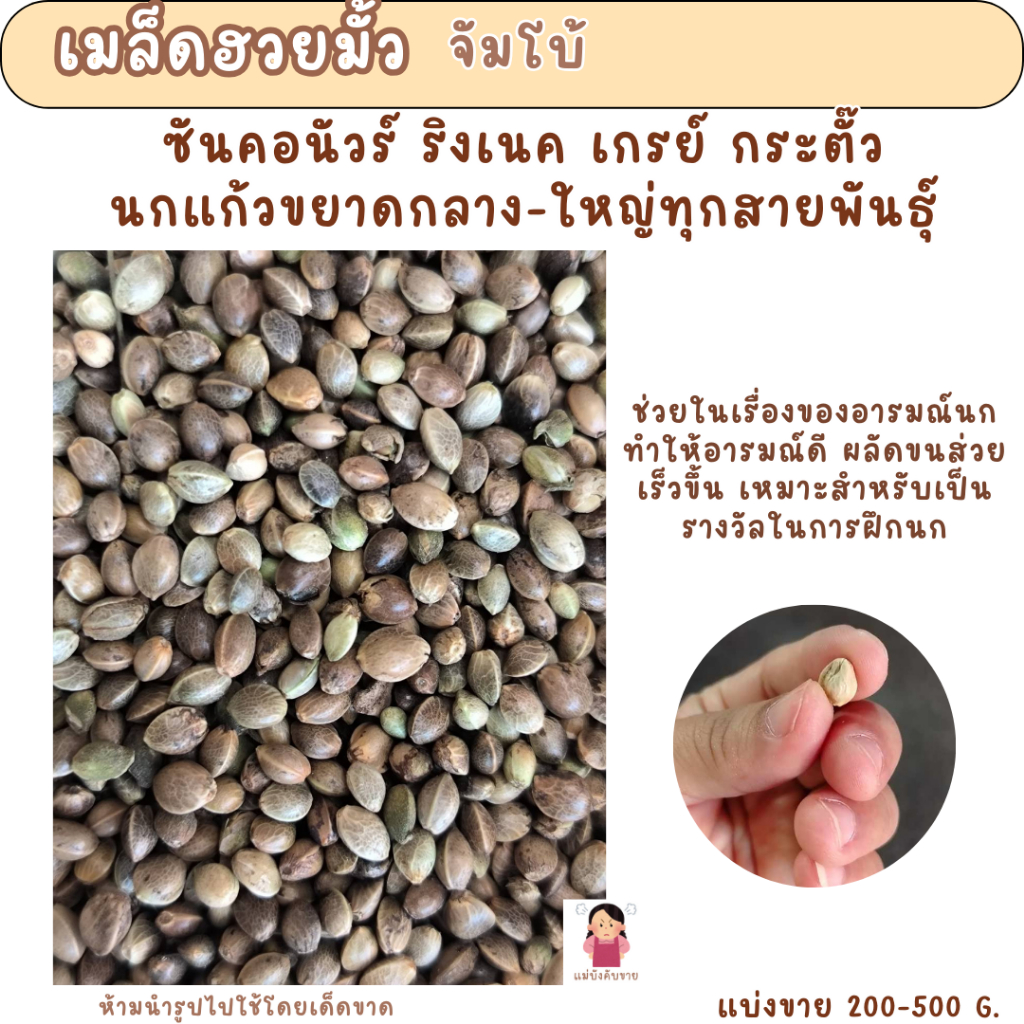 เมล็ดฮวยมั้ว ไซร้จัมโบ้ (แบ่งขาย 200-500 G.) อาหารนก เหมาะสำหรับเป็น รางวัลในการฝึกนก