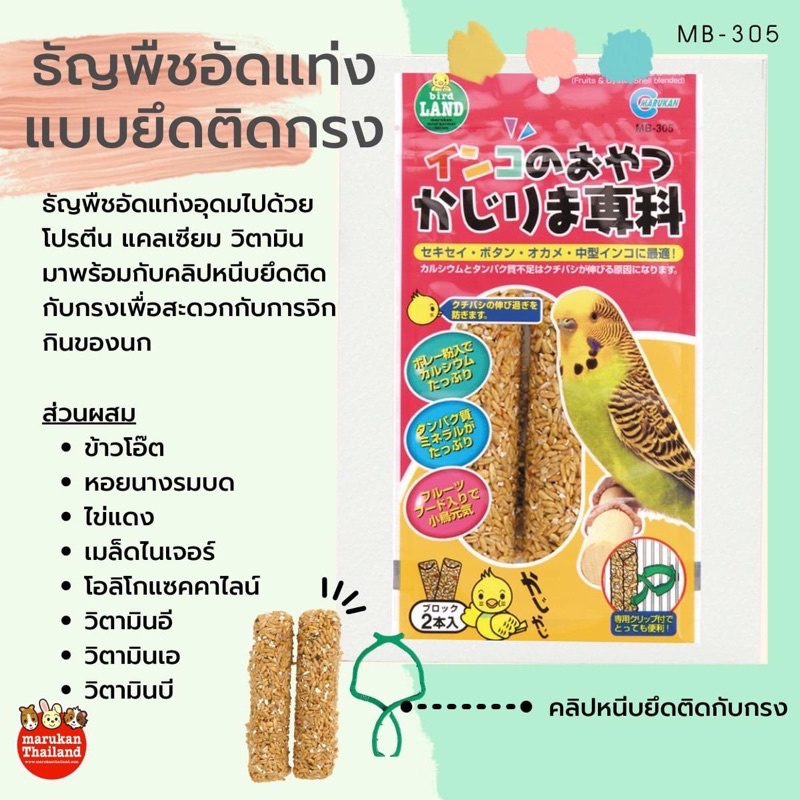 Marukan มารุคัง ธัญพืชอัดแท่งสำหรับนก คุณภาพดีจากญี่ปุ่น 2แท่ง MB305 อาหารนก ขนมนก