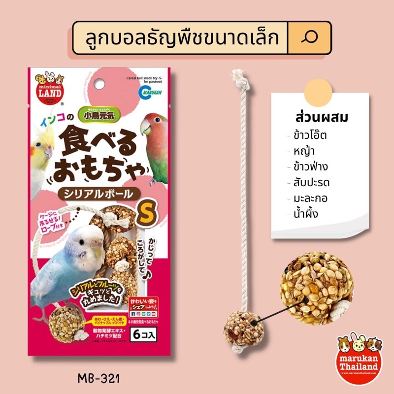 Marukan ลูกบอลธัญพืชไซส์เล็ก 50gx6ลูก ขนมนก มารุคัง นำเข้าจากญี่ปุ่น MB321