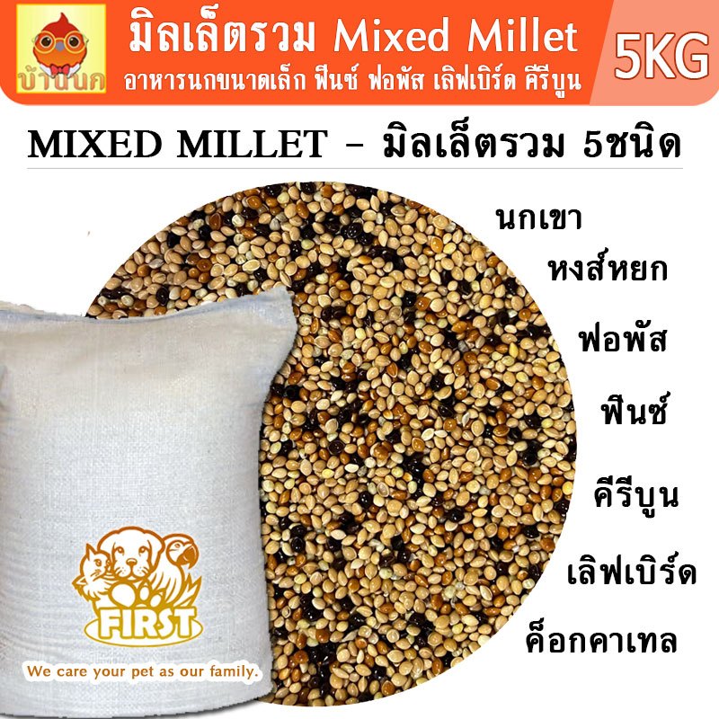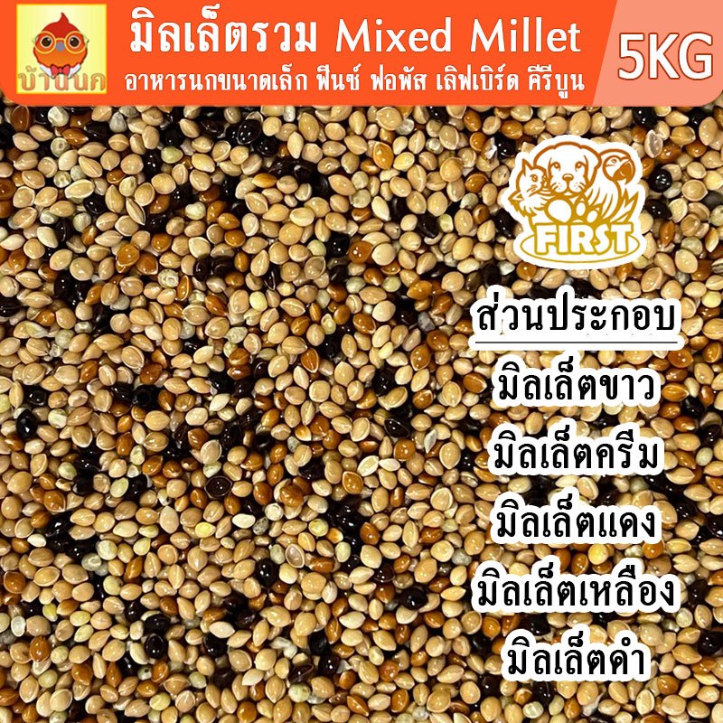 FIRST อาหารนกมิลเล็ตรวม Mixed millet 5kg ยกกระสอบ millet นกเขา หงส์หยก budgie ฟินซ์ คีรีบูน ค็อกคาเทล พาราคีท parakeet