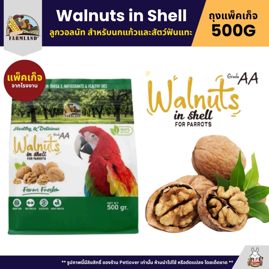 Farmland Walnuts in Shell ลูกวอลนัท สำหรับนกแก้วและสัตว์ฟันแทะ (แพ็คเก็จ 500G)