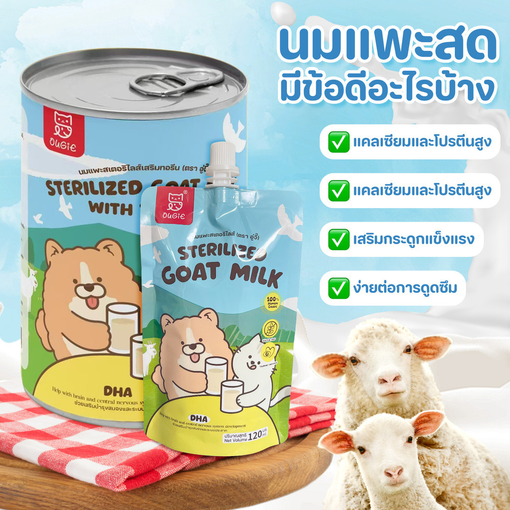 ( 120g – 400g ) Ougie Goat milk อู่จี๊ นมแพะน้ำ แบบซอง 120 ml / แบบกระป๋อง 400 ml