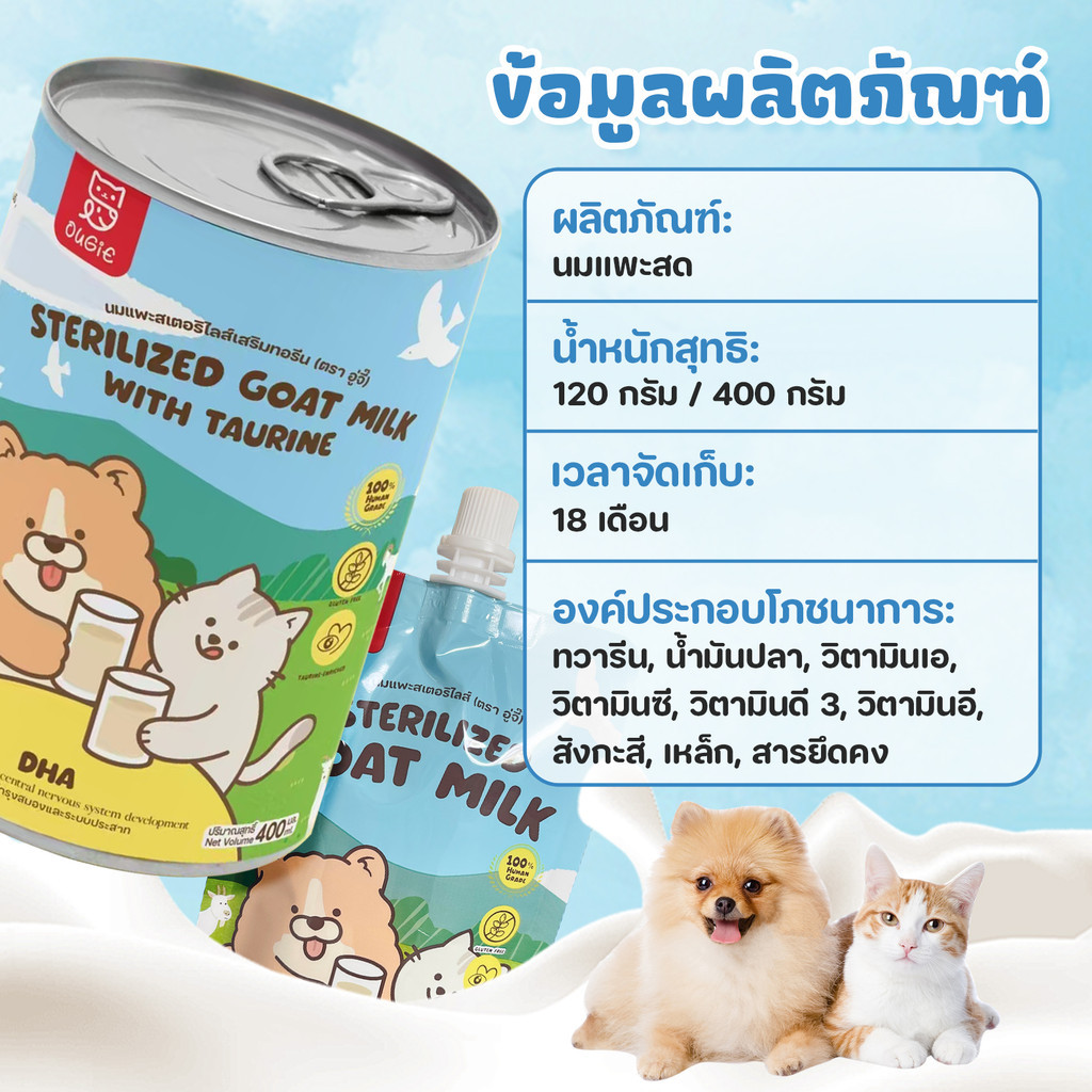 ?400ML /120ML นมแพะสเตอริไลส์สำหรับสัตว์เลี้ยง Goat Milk นมแพะแท้ 100% ปราศจากนมผง