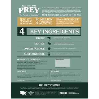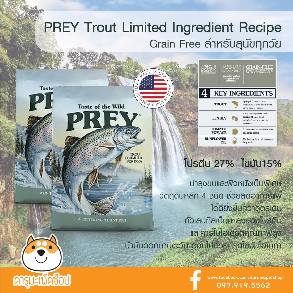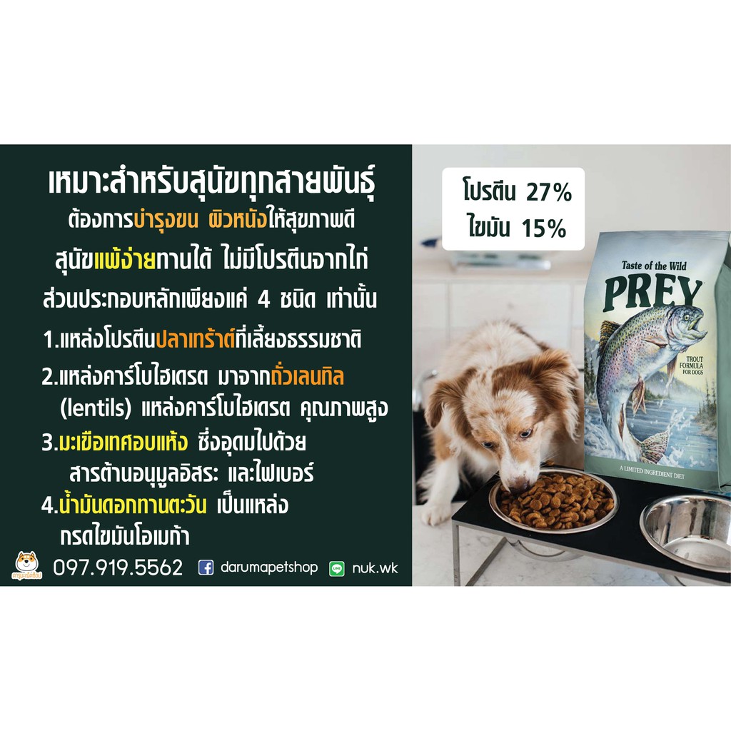 อาหารสุนัข บำรุงขน ผิวหนัง เหมาะกับสุนัขแพ้ง่าย ปลาเทร้า* อาหารสุนัข PREY by Taste Of The Wild Trout 680 g 1 Free 1