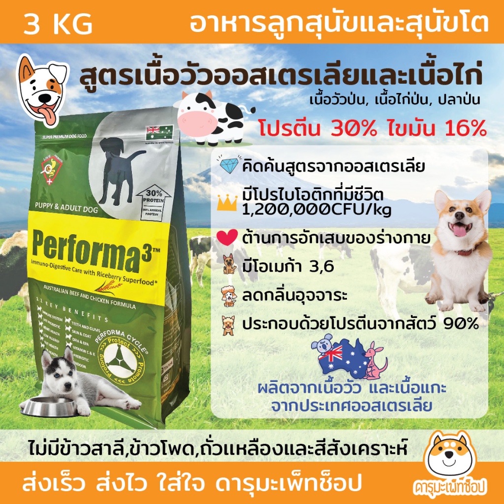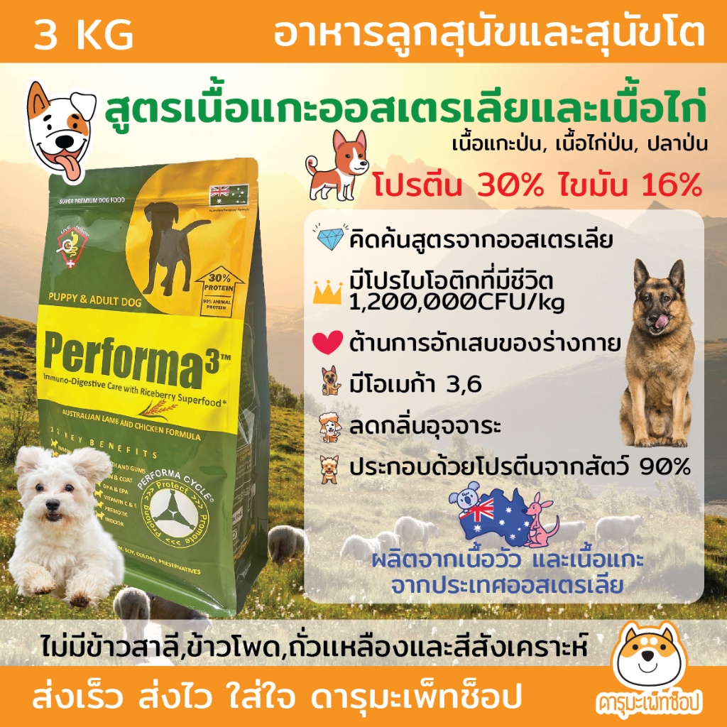 อาหารสุนัขสูตรเนื้อแกะ เนื้อวัวจากออสเตรเลียและไก่ (HOLISTIC) 3 kg Performa3 Dog Australian Lamb, Beef