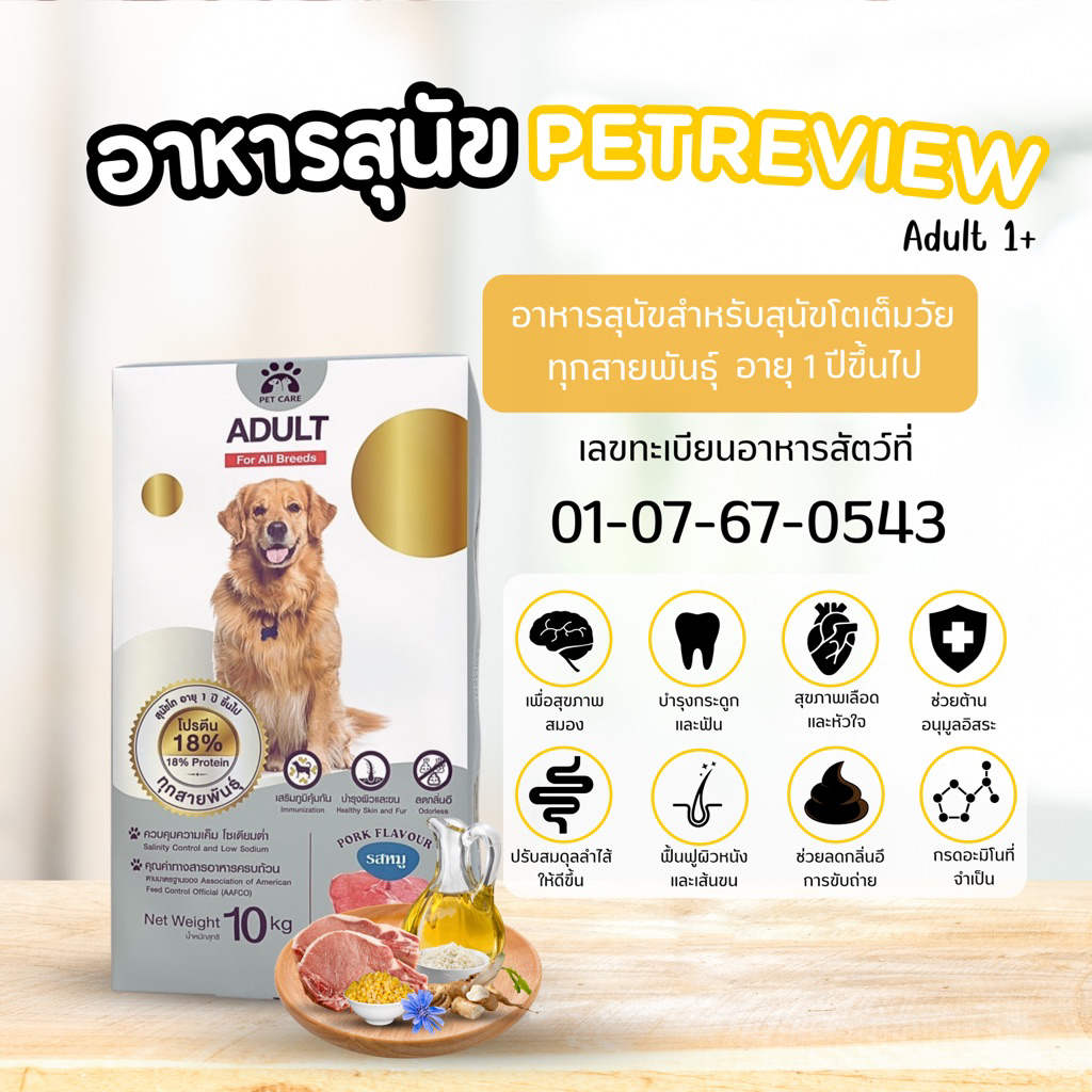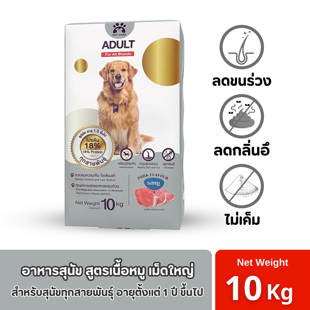 อาหารสุนัขรสหมู 10 Kg (เม็ดใหญ่) สูตรลดกลิ่นอึ ลดขนหลุดร่วง อายุ 1 ปี ขึ้นไป