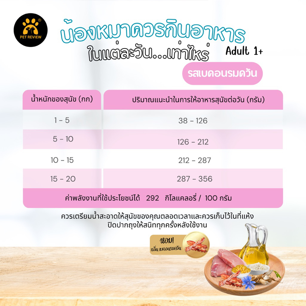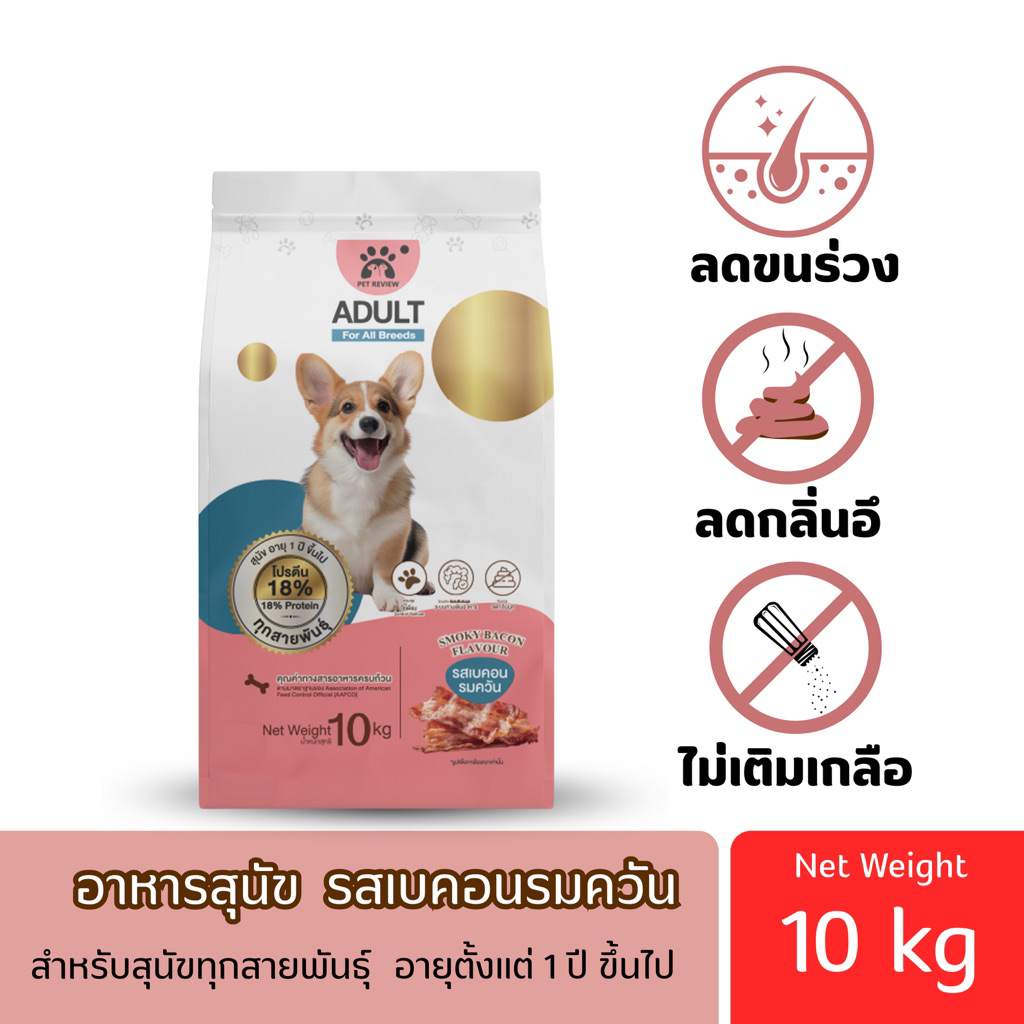 อาหารสุนัขเบคอนรมควัน 10 Kg (เม็ดรูปกระดูก) ลดกลิ่นอึ ลดขนร่วง อายุ 1 ปีขึ้นไป