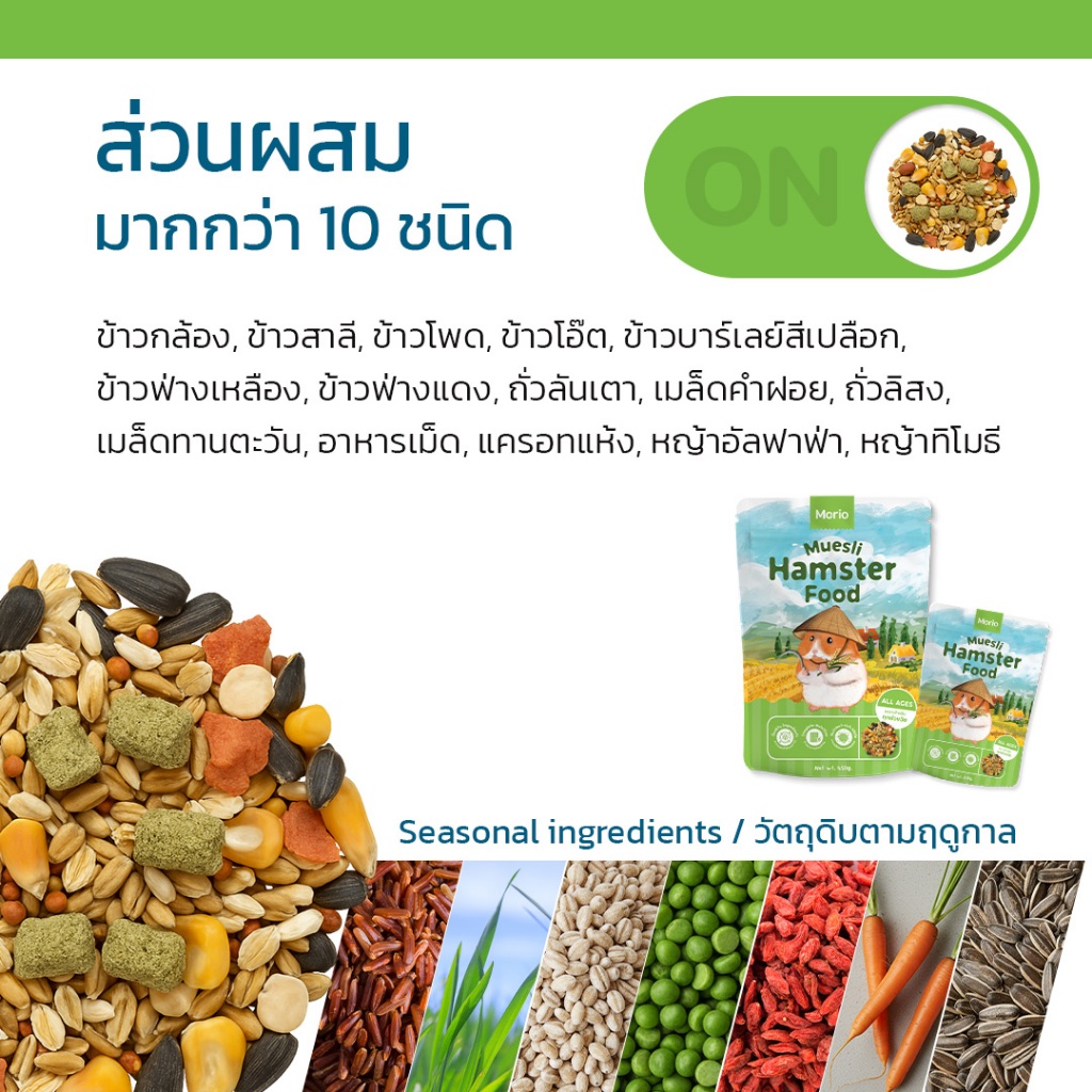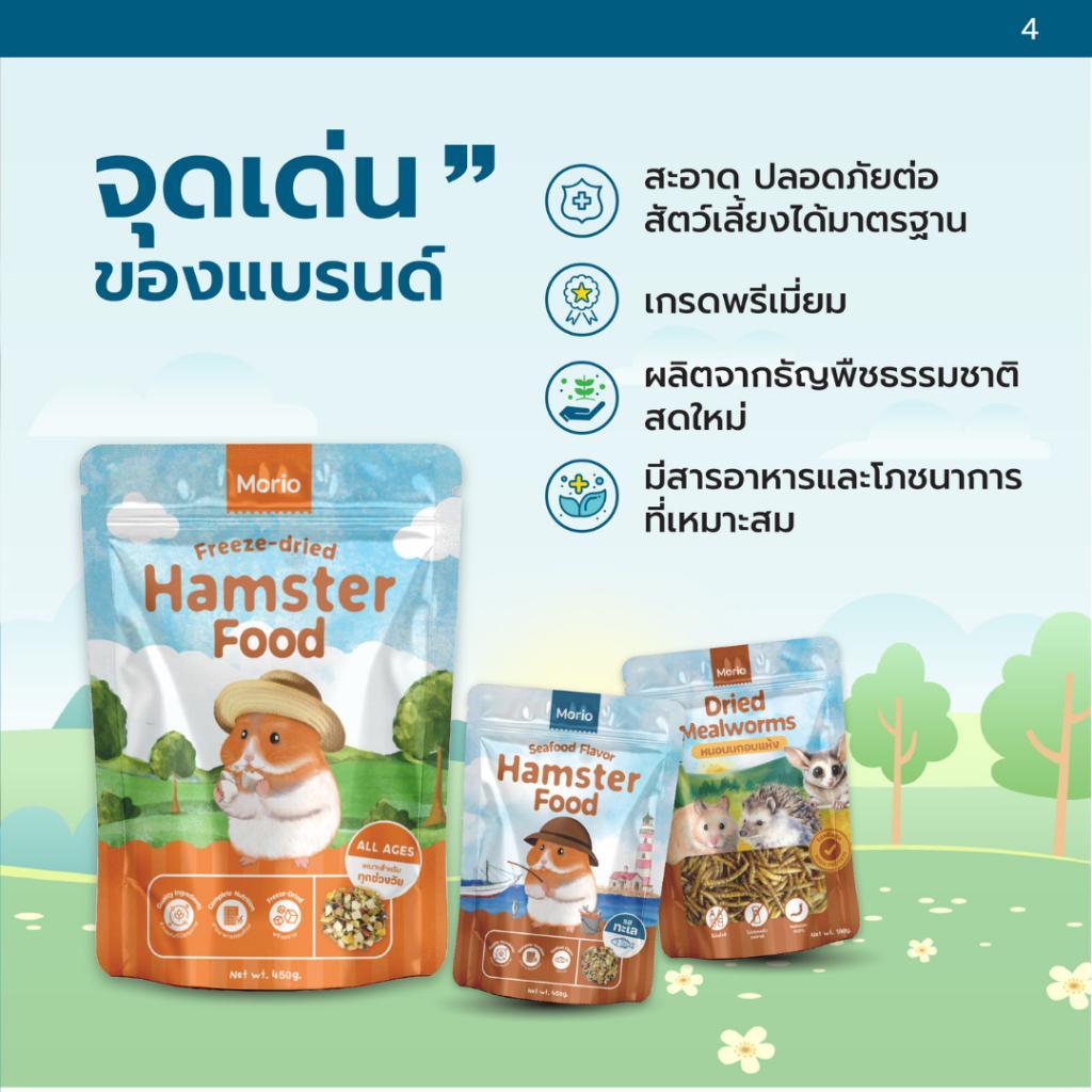 (2ถุง) ถูกกว่า!! Morio อาหารแฮมเตอร์ 450g โปรตีนสูง สารอาหารครบถ้วน อร่อยมากกก