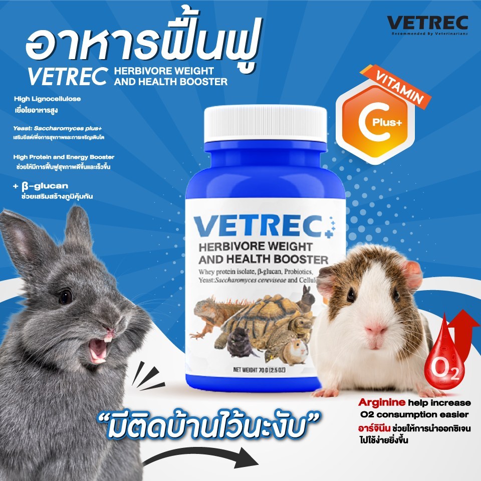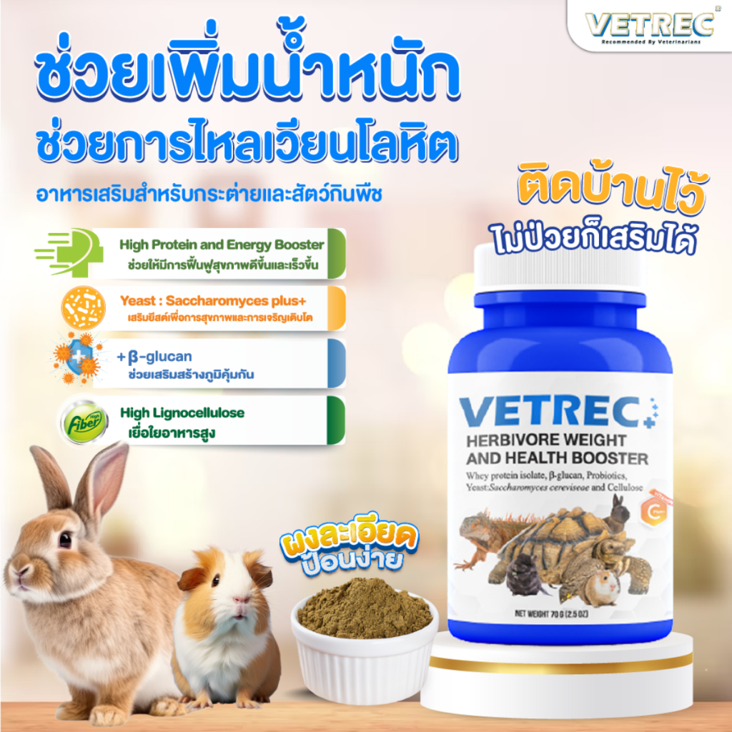 HERBIVORE WEIGHT AND HEALTH BOOSTER อาหารฟื้นฟูและเพิ่มน้ำหนักสำหรับกระต่ายและสัตว์กินพืช 70 กรัม