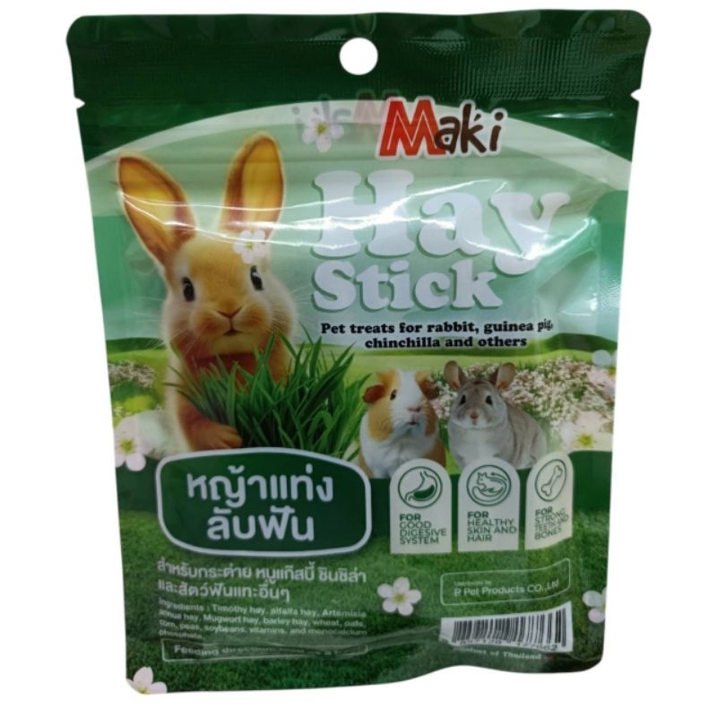 Maki Hay Stick 50g.หญ้าอัดเเท่ง อาหารเสริมเเทะลับฟัน กระต่าย หนูแกสบี้ สัตว์ฟันแทะ