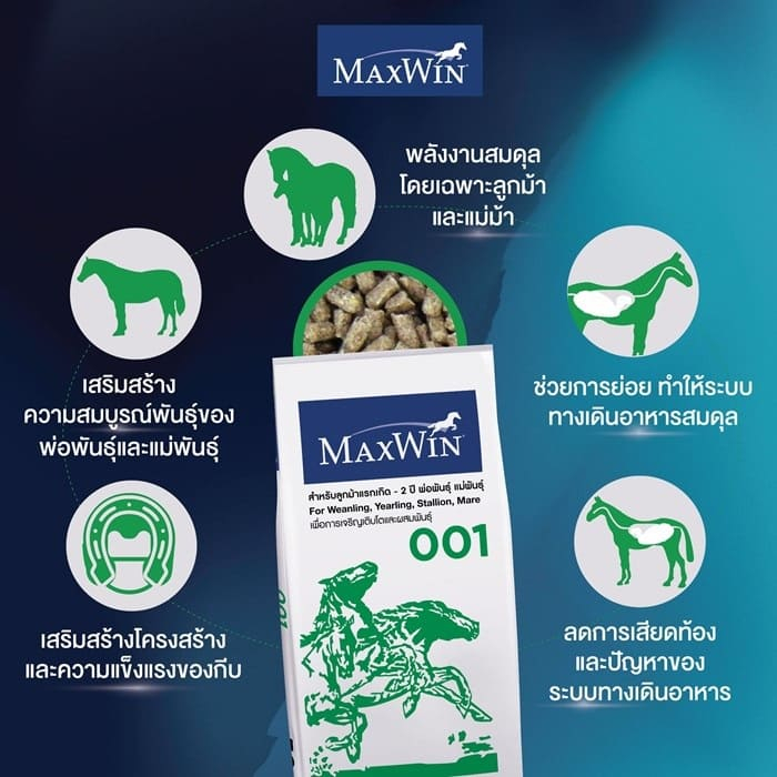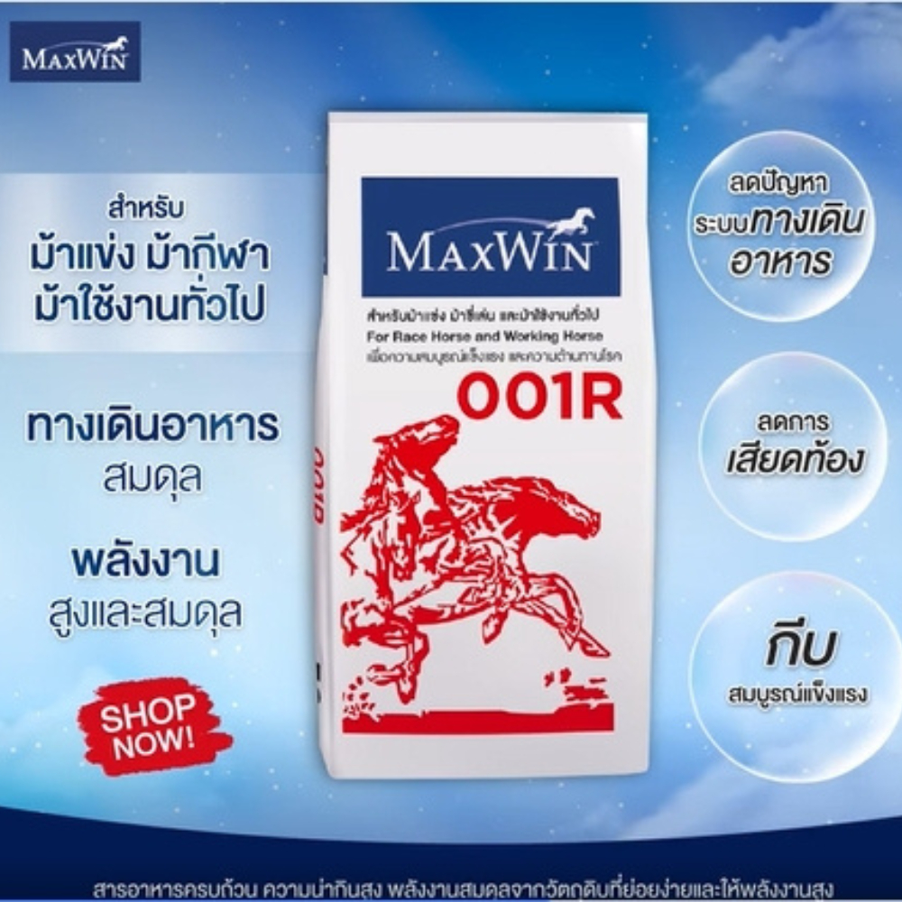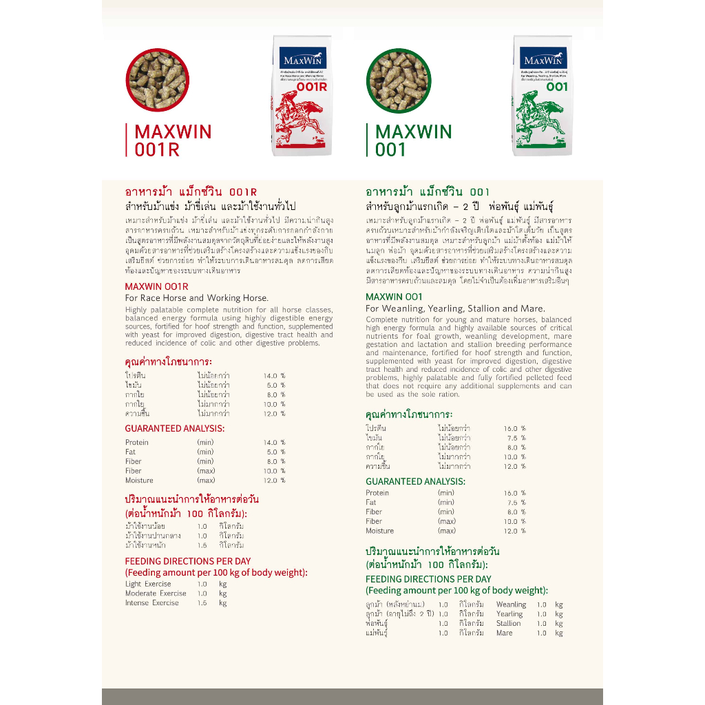 MaxWin อาหารม้า แม็กซ์วิน สูตร001R แดง และ สูตร001 เขียว สำหรับม้าแข่ง ขนาด 30kg.