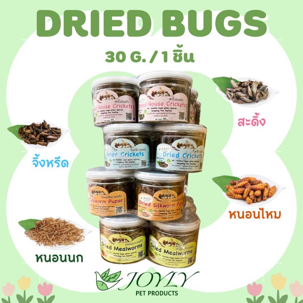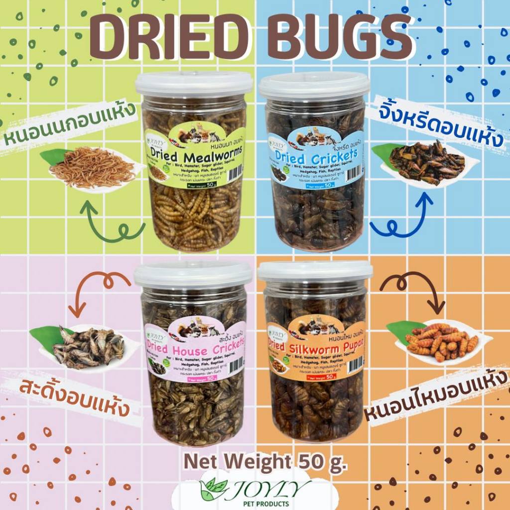 DRIED BUGS แมลงอบแห้ง สำหรับสัตว์เลี้ยง JOYLY PET PRODUCTS 3ขนาด (แบบกระปุก)มี4ชนิด