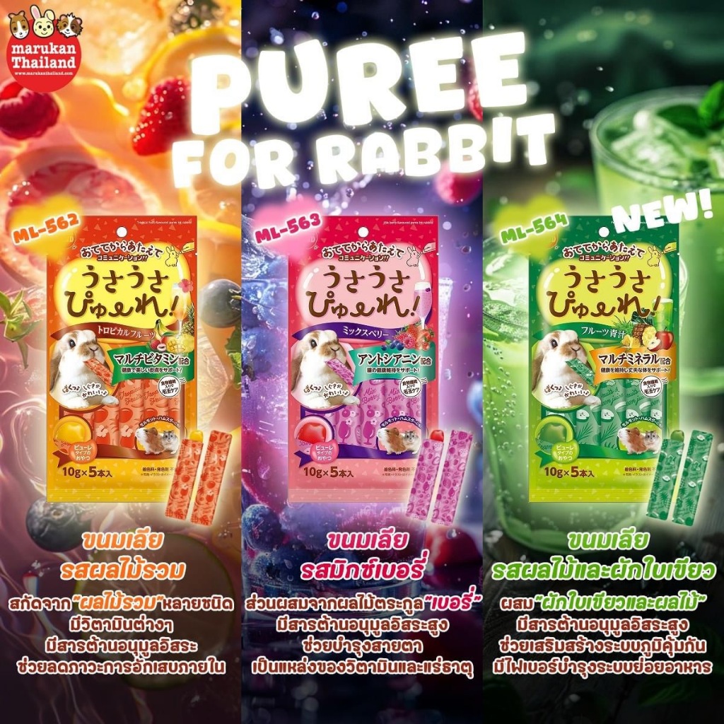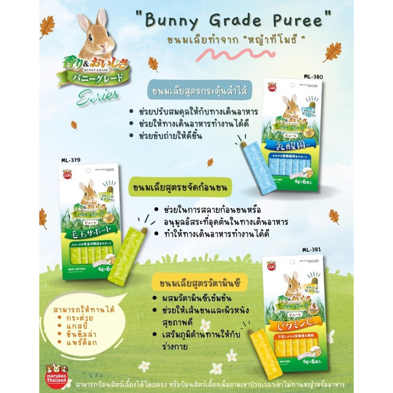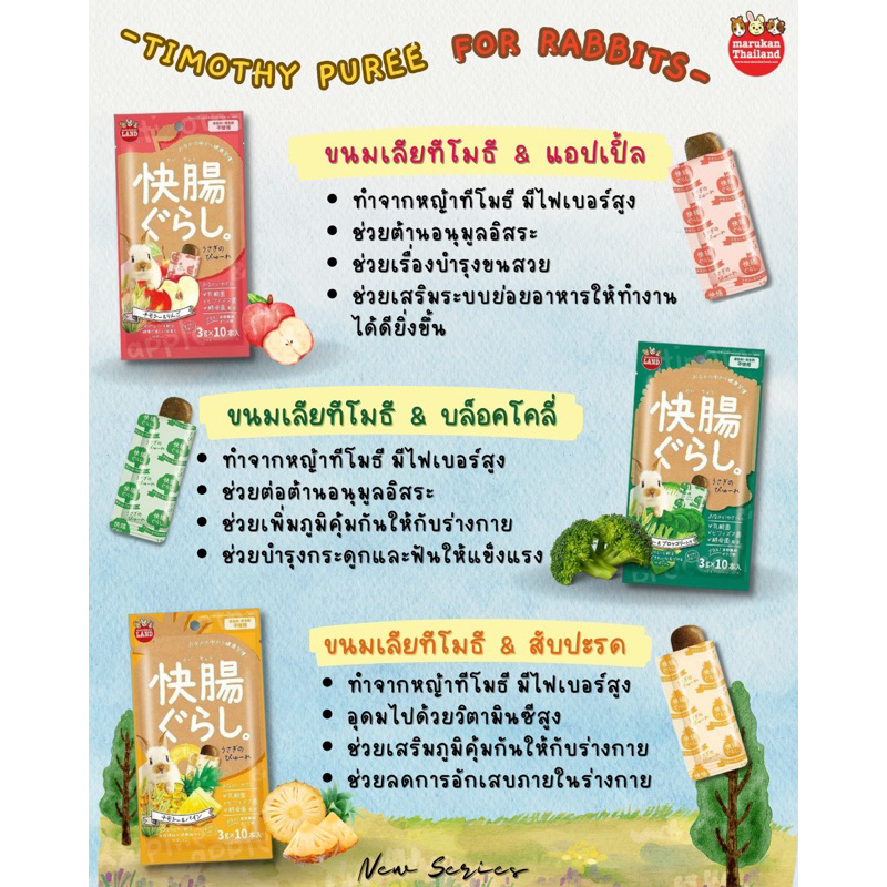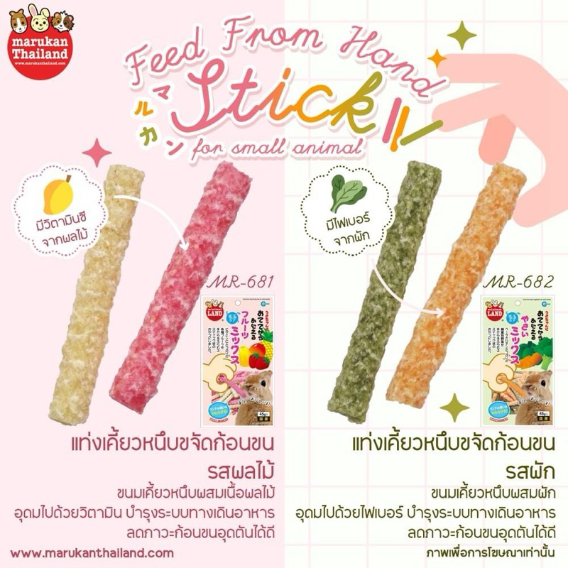 Marukan ขนมสัตว์ฟันแทะ (กลูเตนฟรี)ML-608 ทีโมธีอัดแท่ง/ML-609 อัลฟาฟ่าอัดแท่ง/ML-610 หญ้าโอ๊ตอัดแท่ง ยกถุง 60g