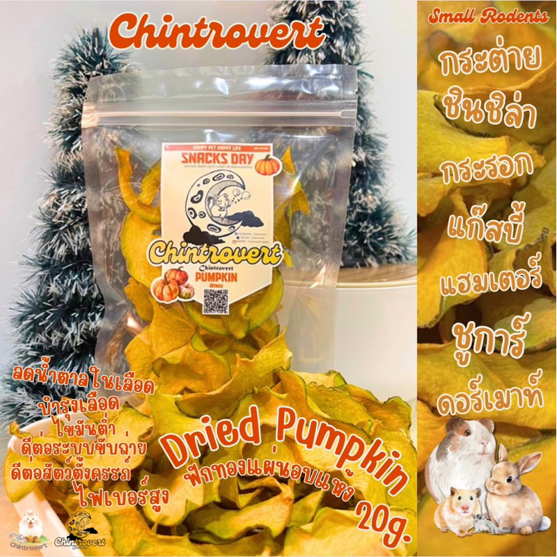Chintrovert ✨| Dried Pumpkin chips ฟักทองอบแผ่นอบแห้ง 20g. | ขนมกระต่าย ชินชิล่า แฮมเตอร์ แฟตเทล ดอร์เมาท์ ชูการ์