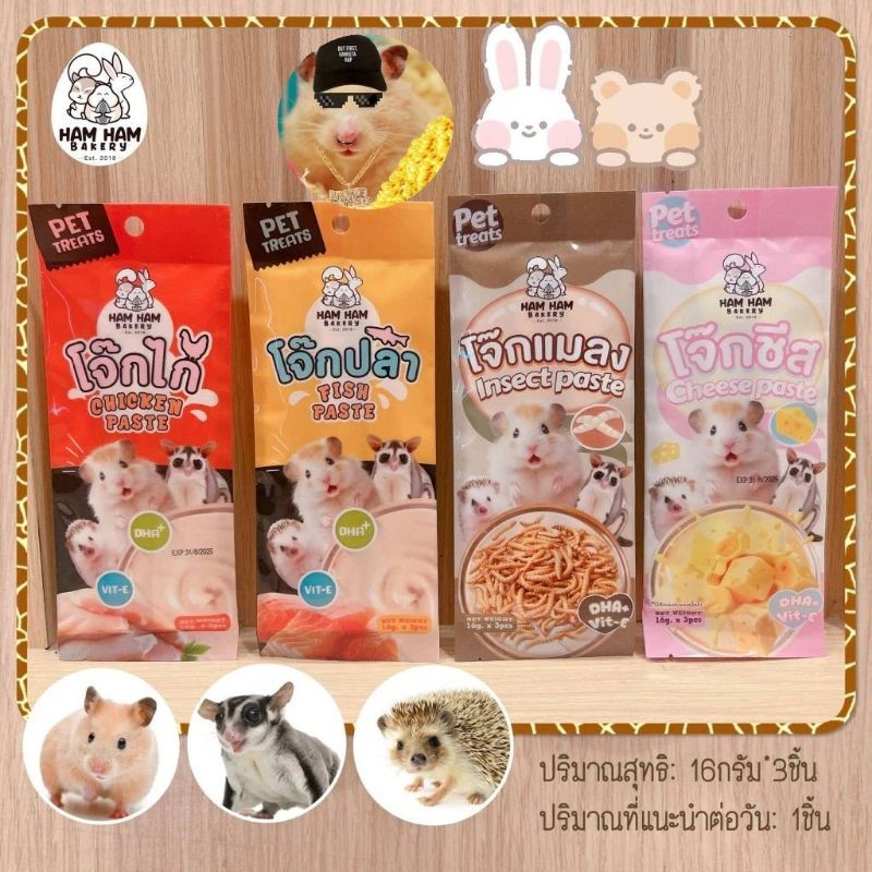 ขนมเลียสัตว์เลี้ยง สำหรับ ชูการ์ เเฮมสเตอร์ เม่นแคระ เเละสัตว์เลี้ยงขนาดเล็ก 1เพ็ค มี3ซอง มี รส ปลา ไก่ แมลง ซีส