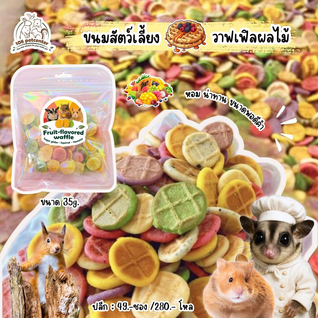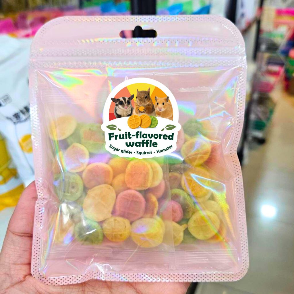 ขนมชูก้าร์ไกรเดอร์ ขนมสัตว์เล็ก วาฟเฟิลผลไม้ สูตรกรอบหอม สำหรับแฮมสเตอร์ กระรอก ขนมแฮมสเตอร์