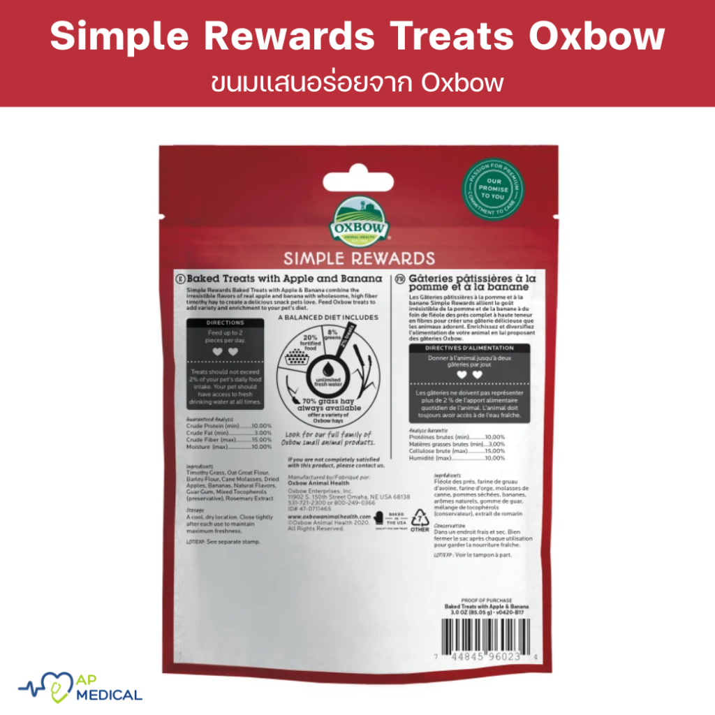 Oxbow Simple Rewards Baked Treats with Carrot & Dill ขนมรสแครอทและผักชีลาว แสนอร่อย ถุงละ 85 กรัม