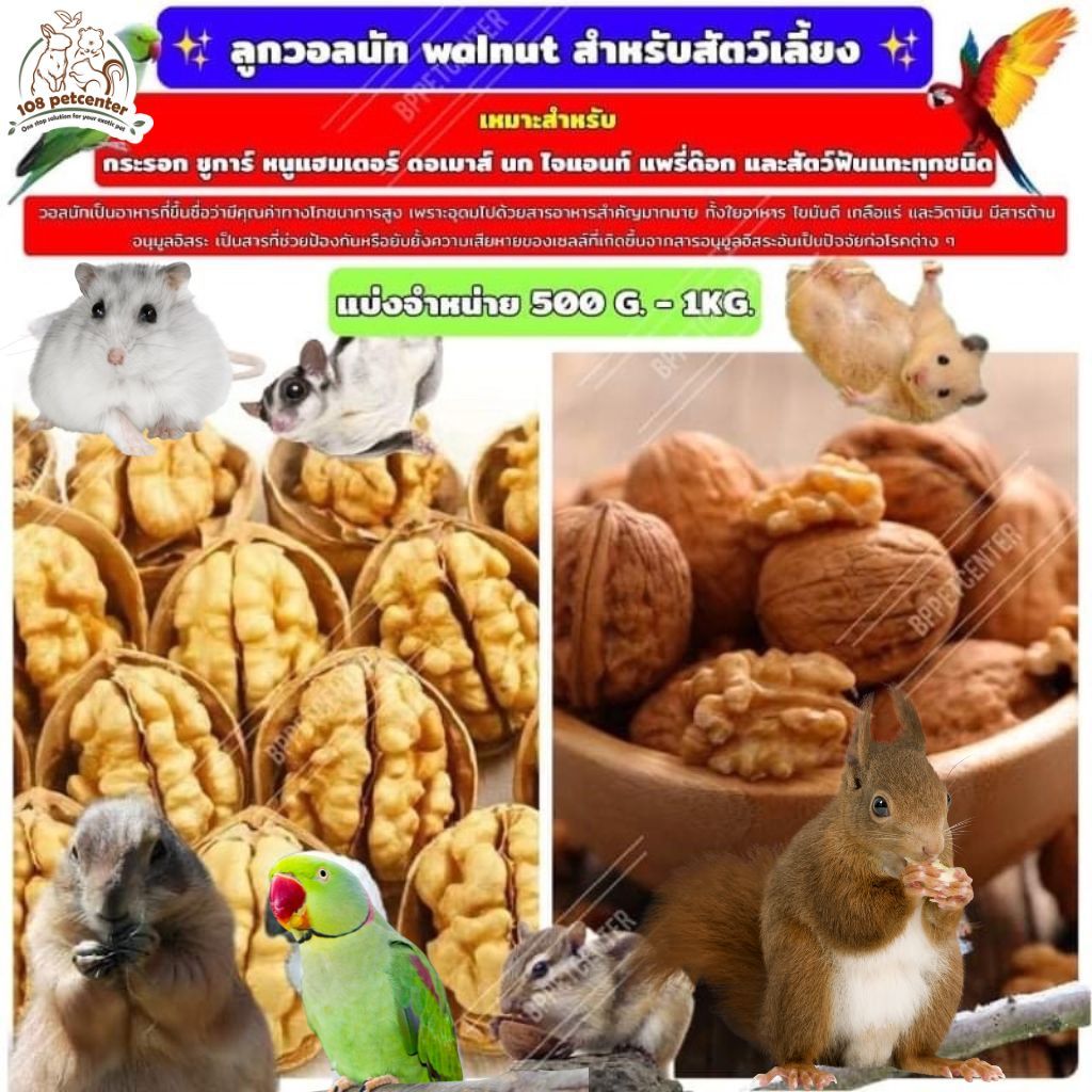 วอลนัท สำหรับนกแก้ว หนูแฮมเตอร์ ชูก้า กระรอก แพรี่ด็อก และสัตว์ฟันแทะ แบบลูก (108pet)