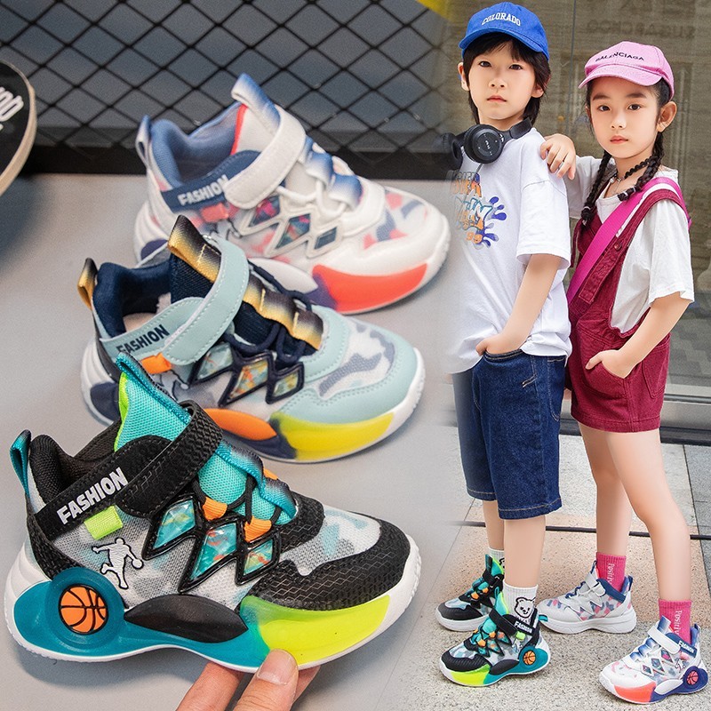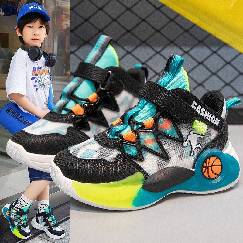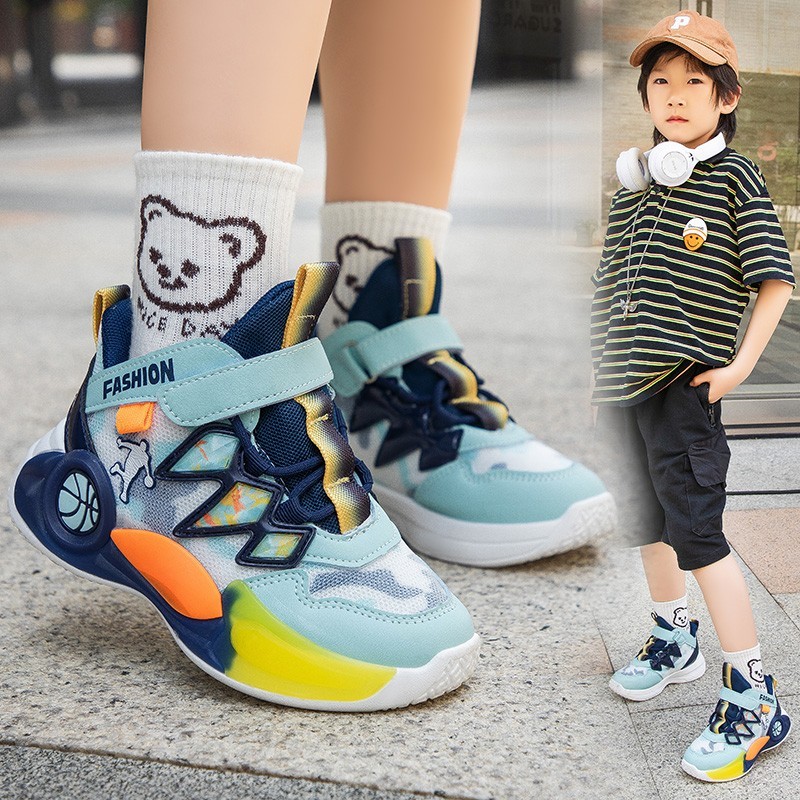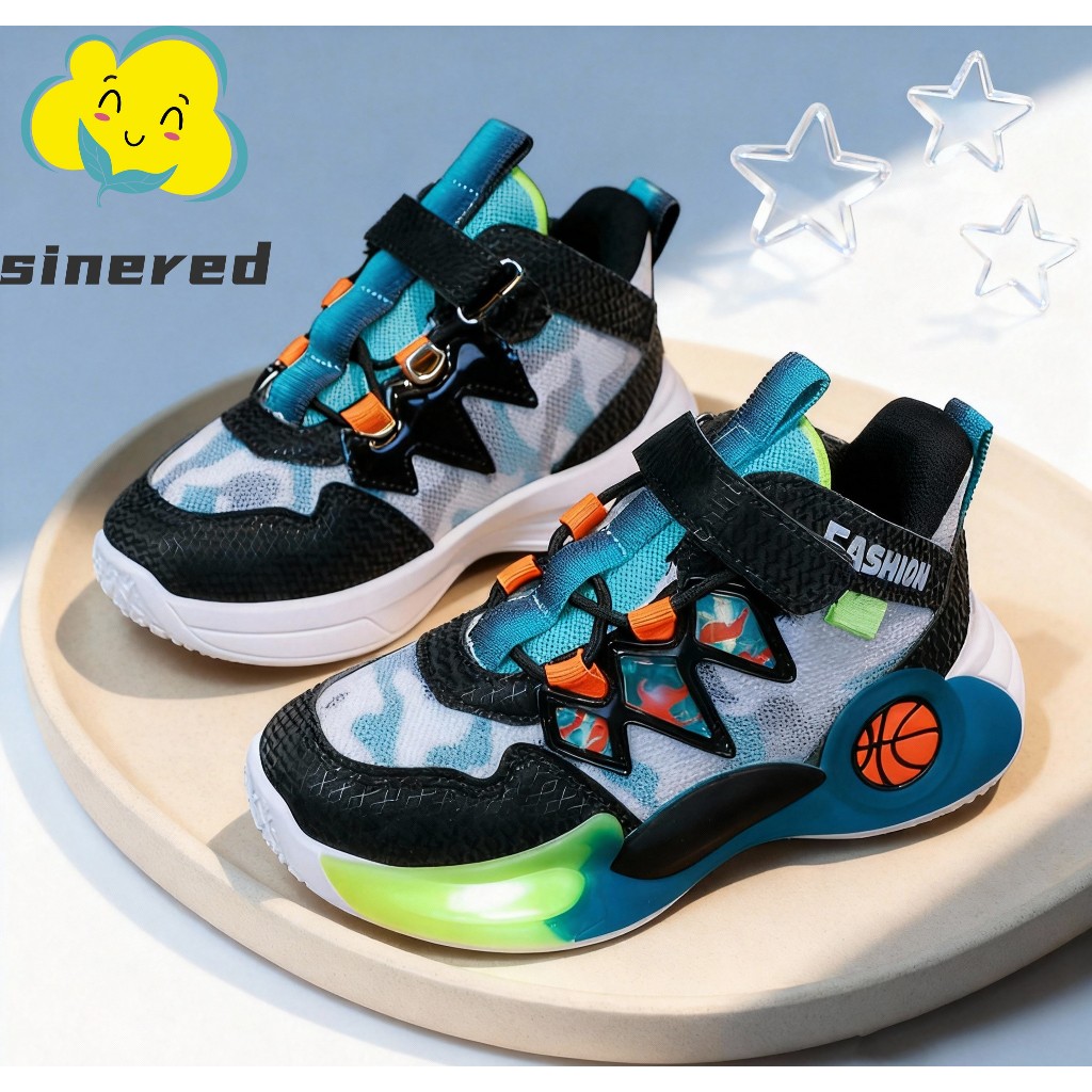 Sinered 2024 เกาหลีเด็กสูงรองเท้าบาสเกตบอลยางนุ่ม แต่เพียงผู้เดียวระบายอากาศเด็กรองเท้ากีฬาอายุ 1-6 ปี
