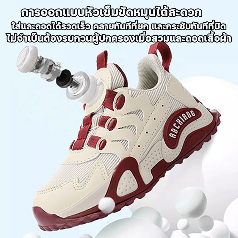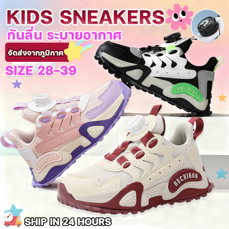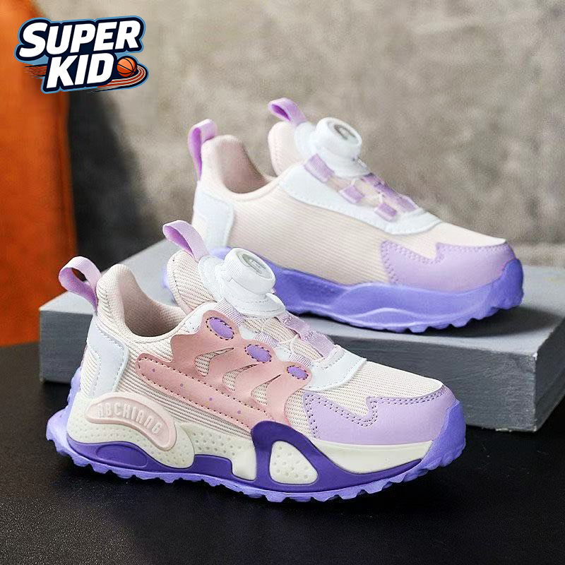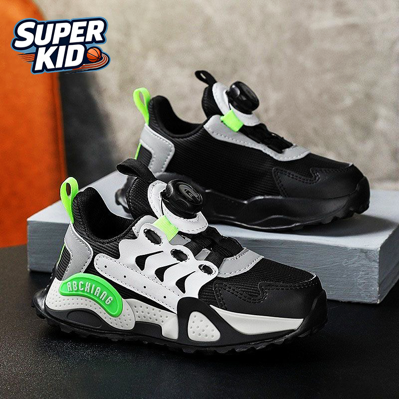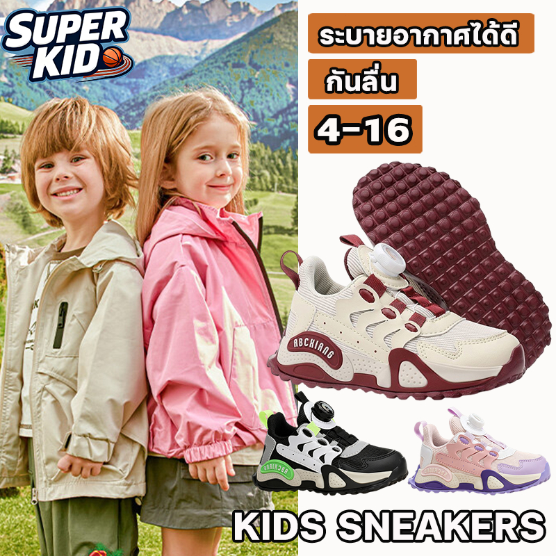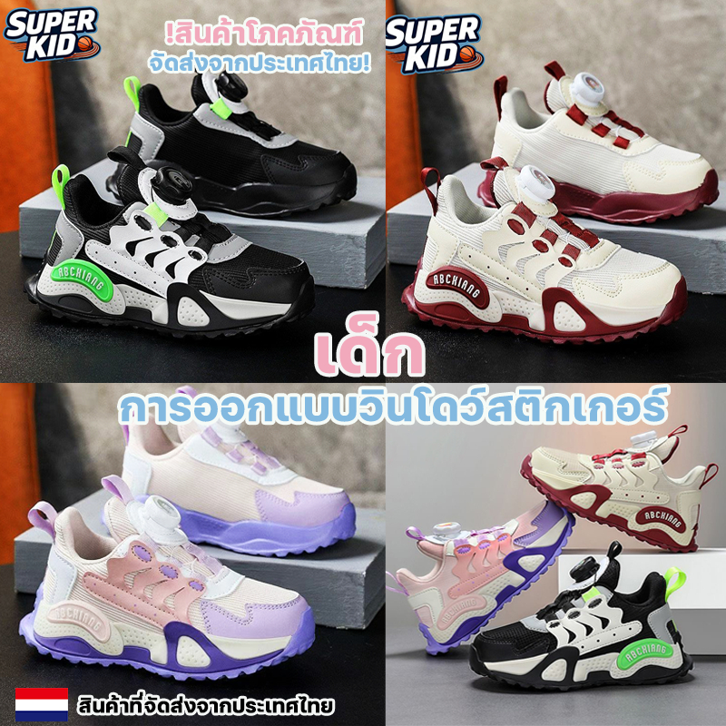 SUPER KID รองเท้ากีฬาเด็ก ปุ่มหมุนที่สะดวก รองเท้าวิ่งเด็กชาย สาว มีน้ำหนักเบาทะแคง่าย 28-39 เด็กอายุ 5-16 ปี