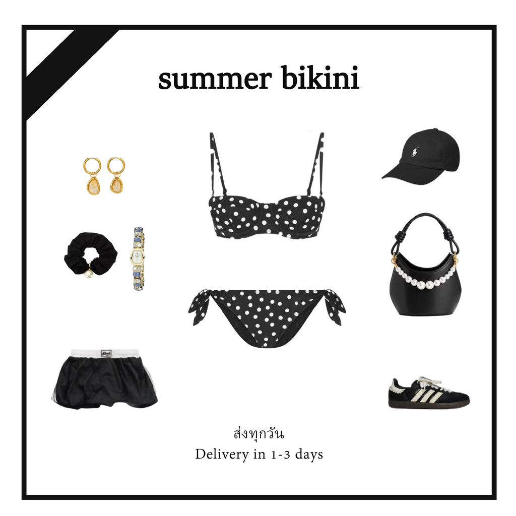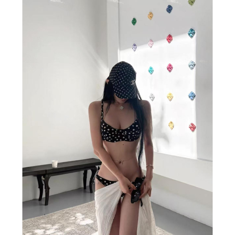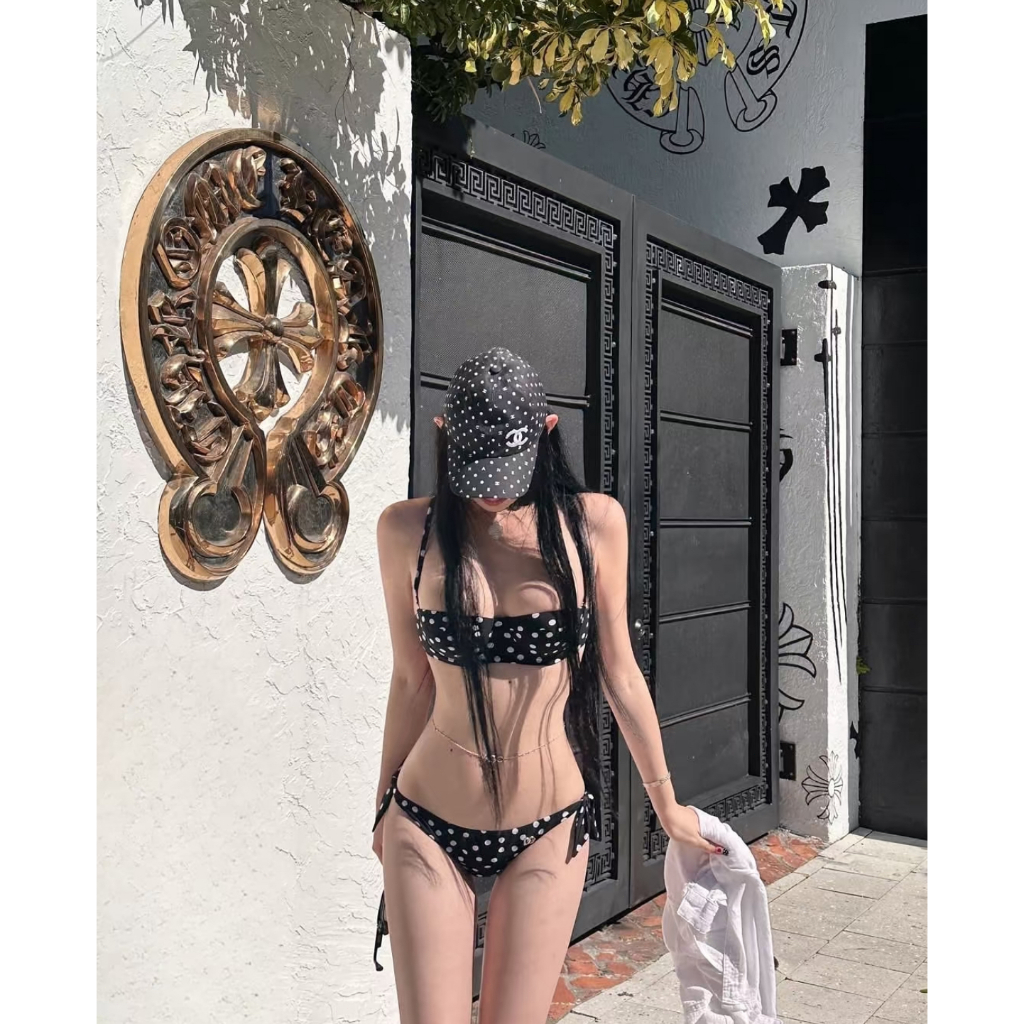 ? ส่งไวจากไทย?บิกินี่ ลายจุด ทูพีช บราบนบิกินี่ เกาะอก มีโครง ผูกหลัง สไตล์เซ็กซี่ summer beach