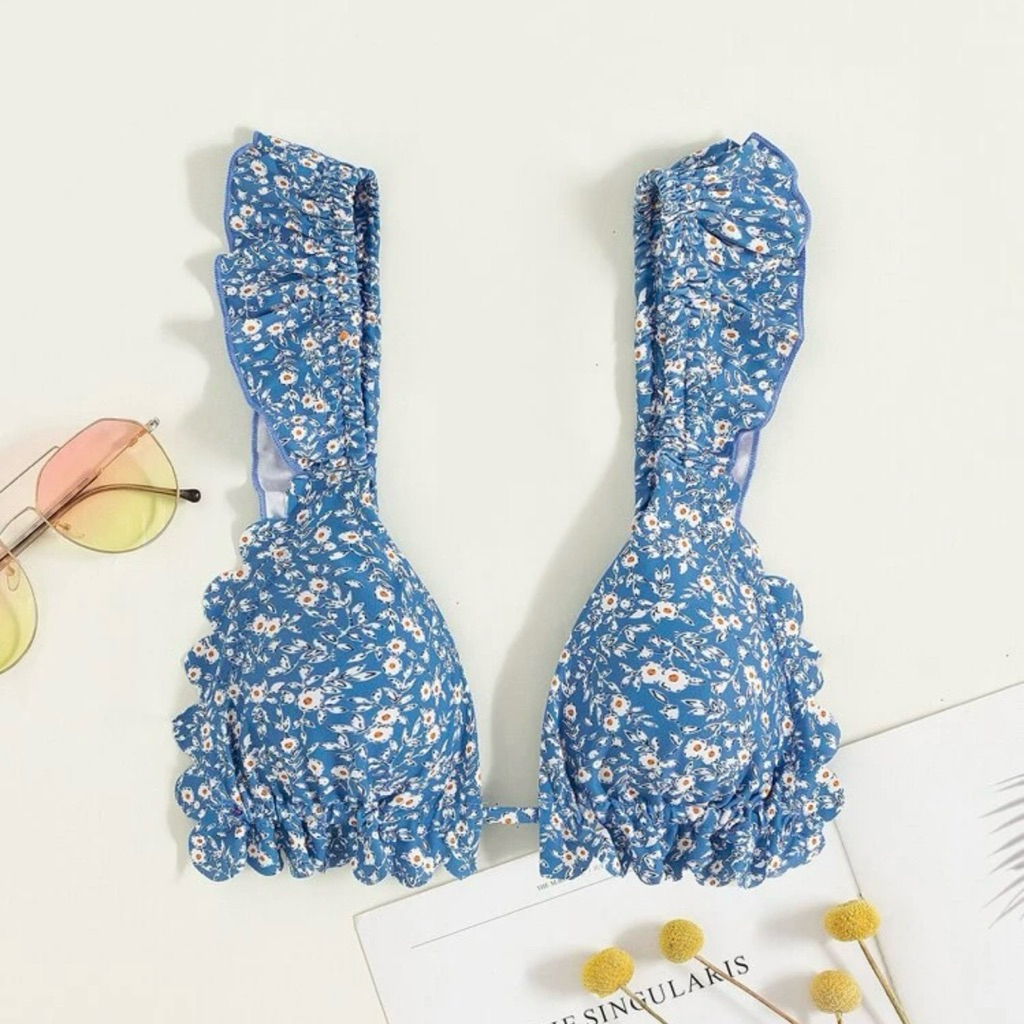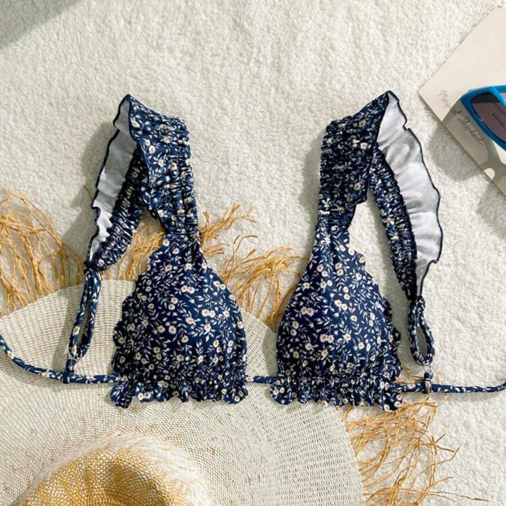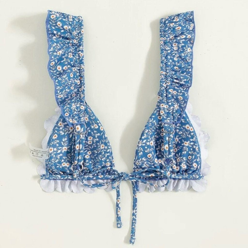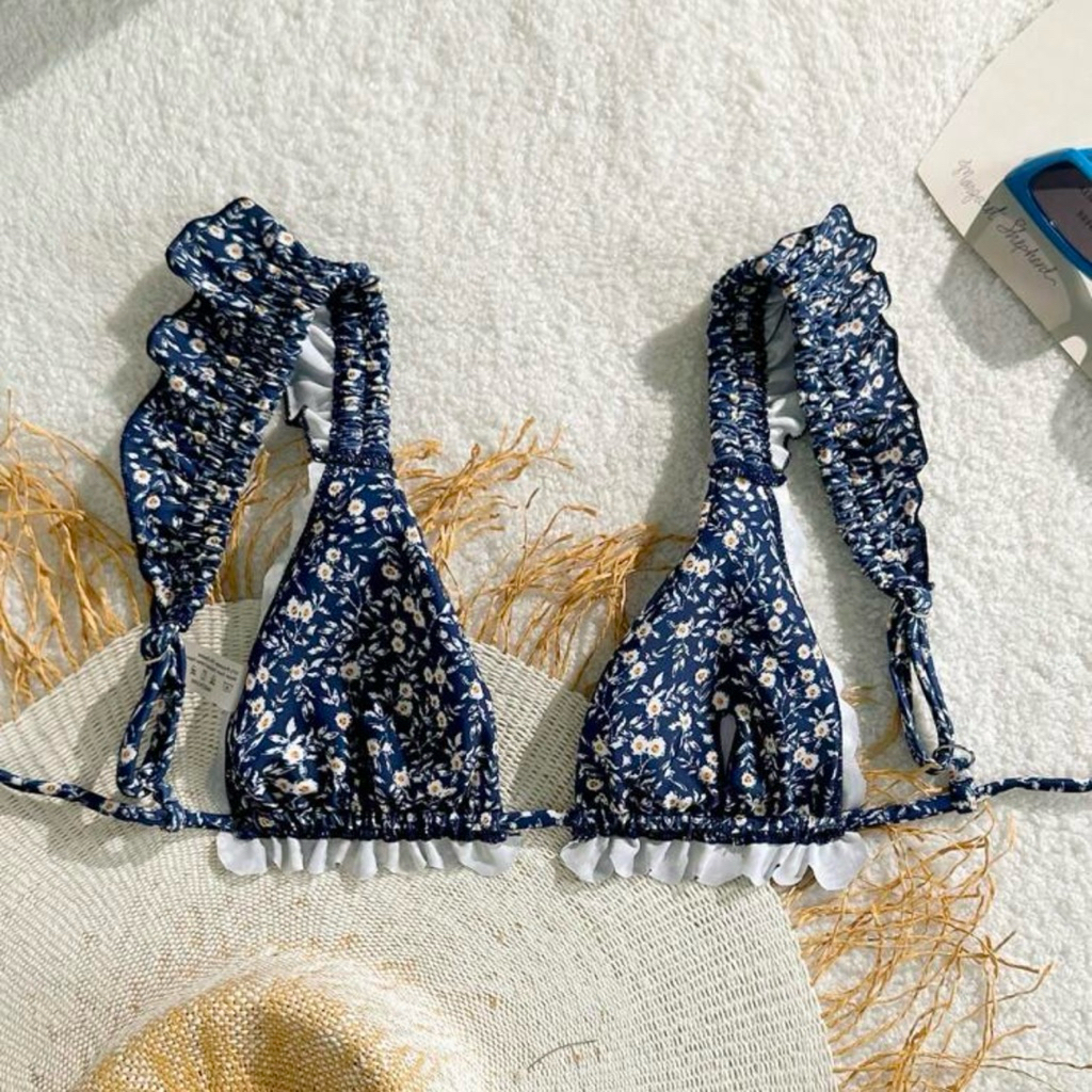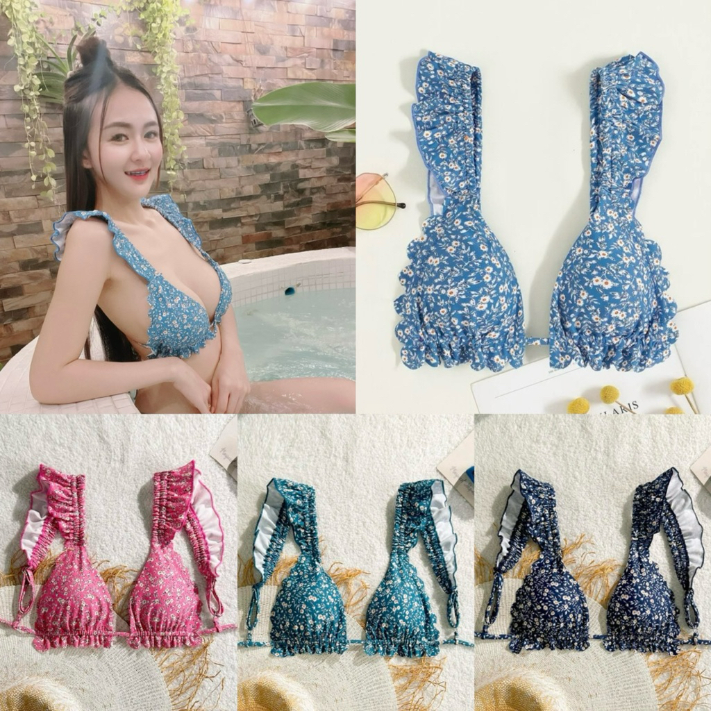 ??????? ??สินค้าพร้อมส่ง?? ????เสื้อบิกินี่ลายดอกไม้ขนาดเล็ก แต่งชายระบาย SW0991????