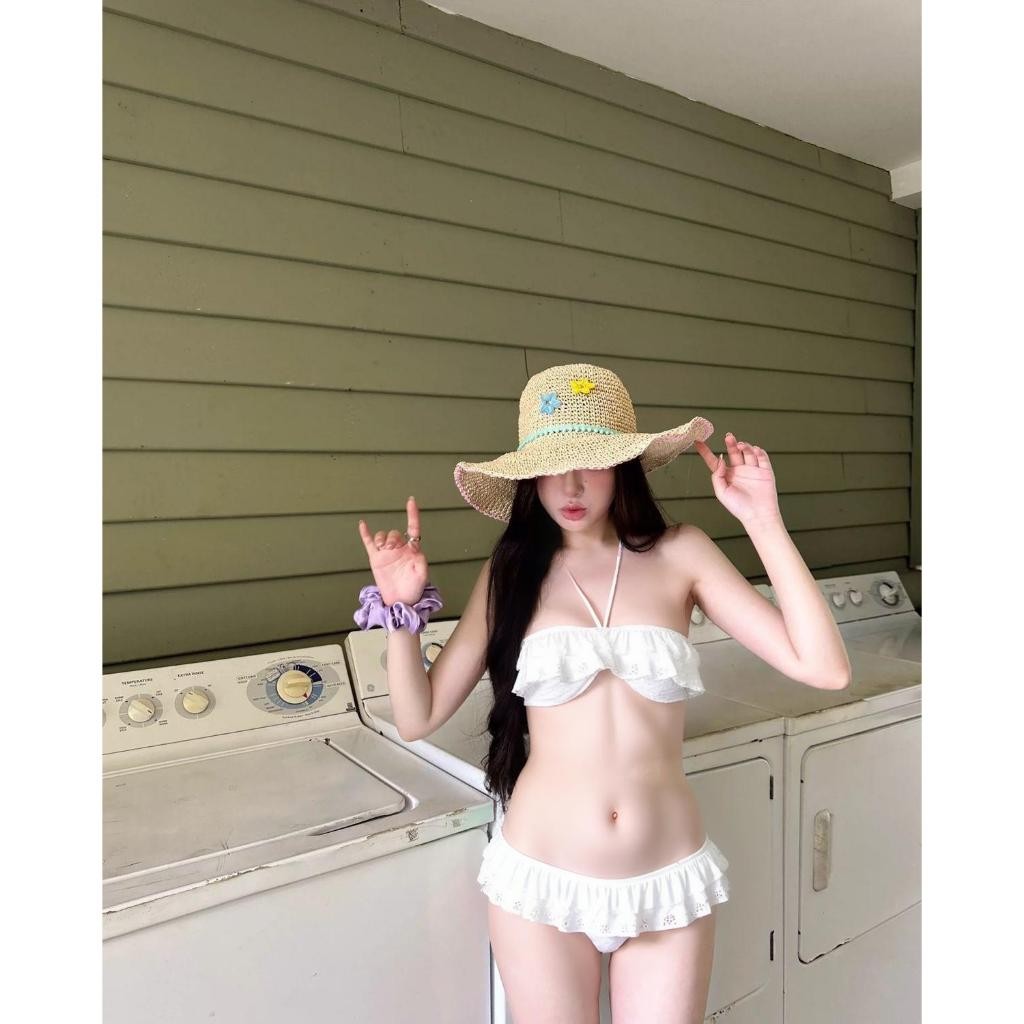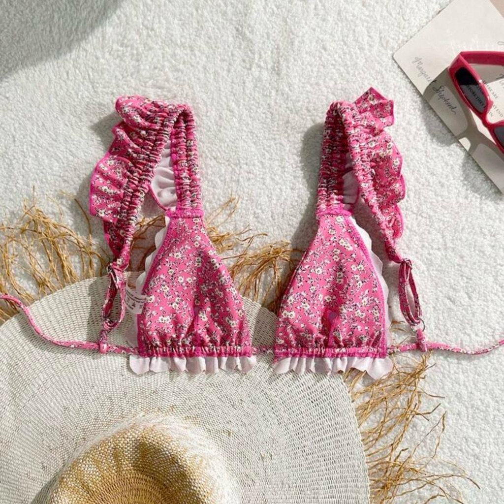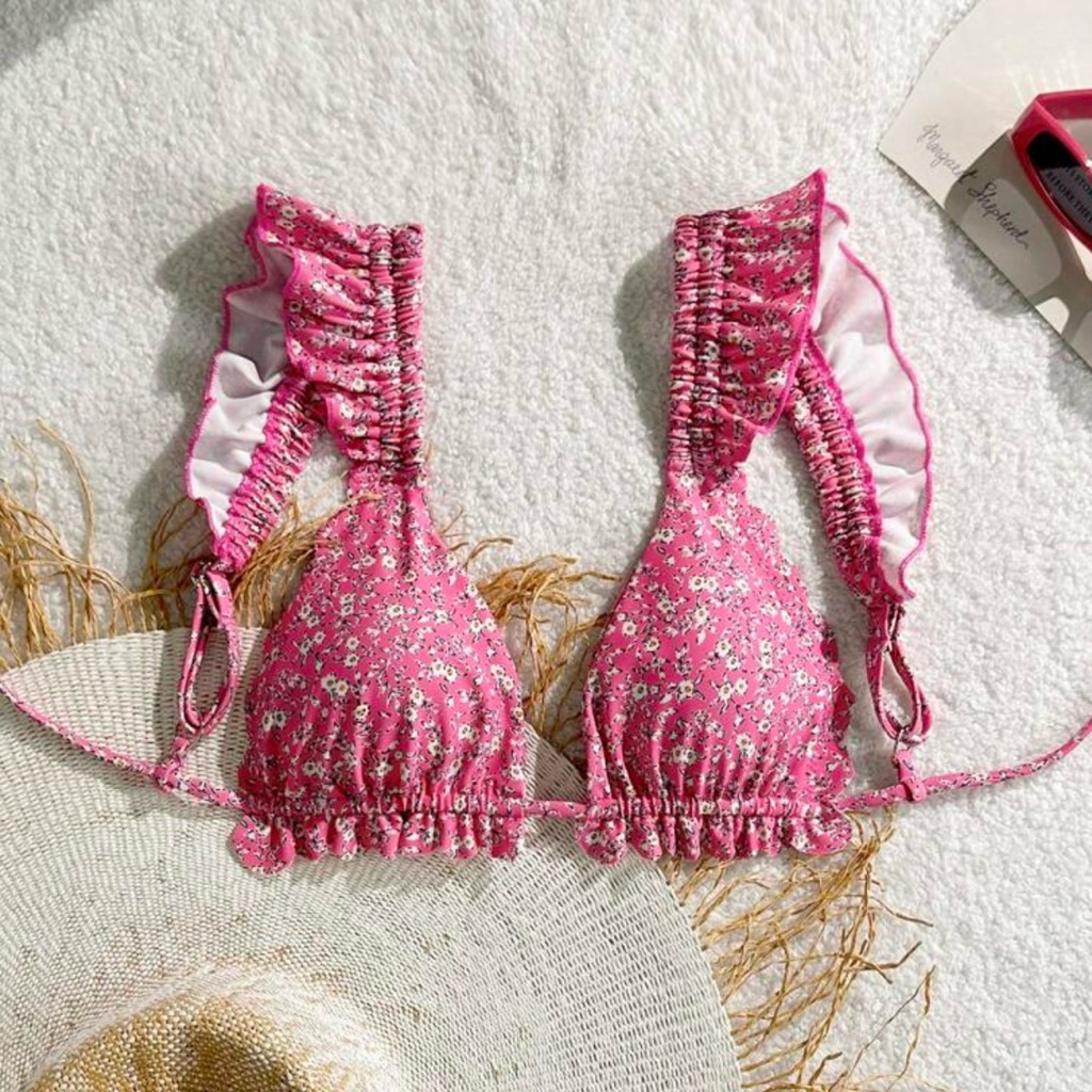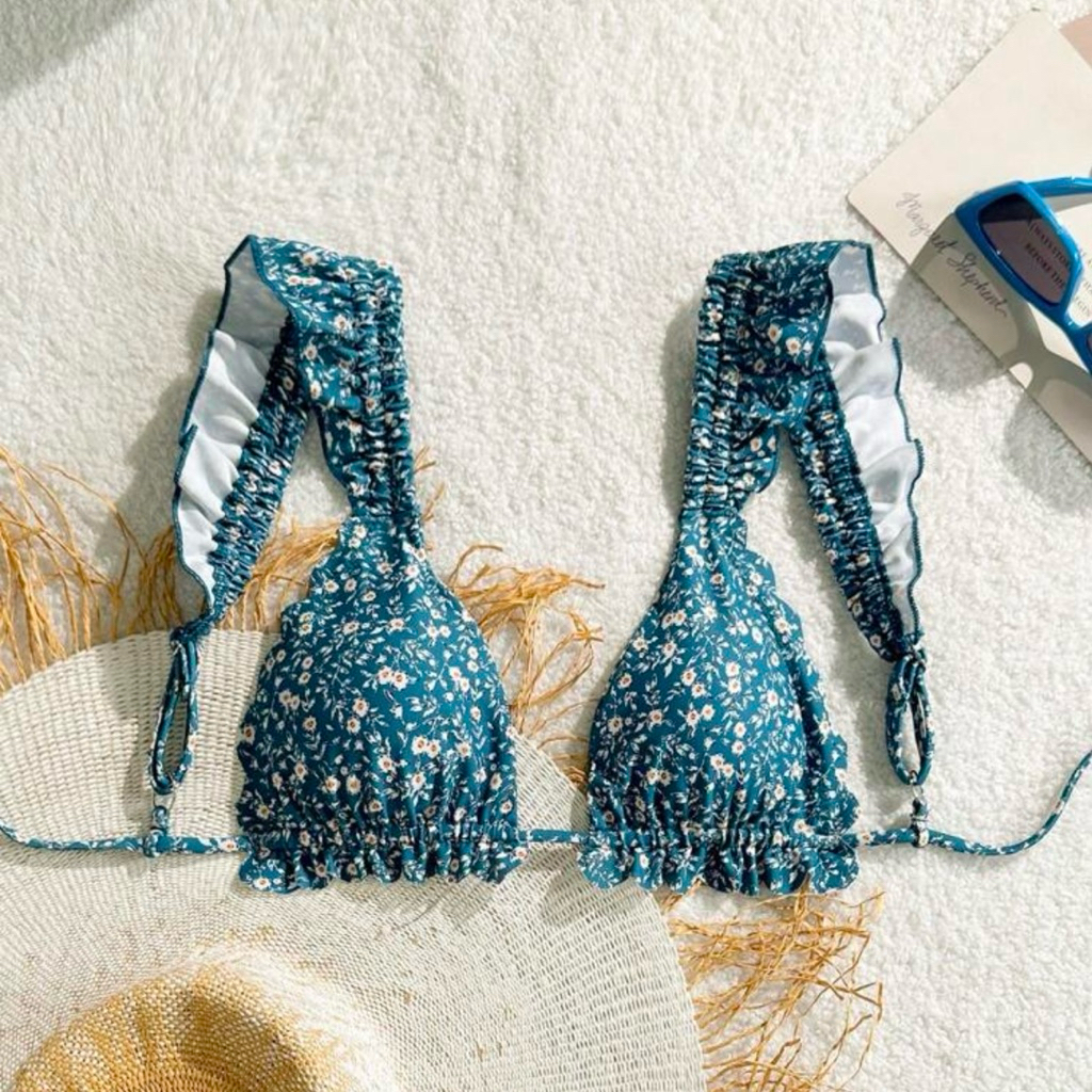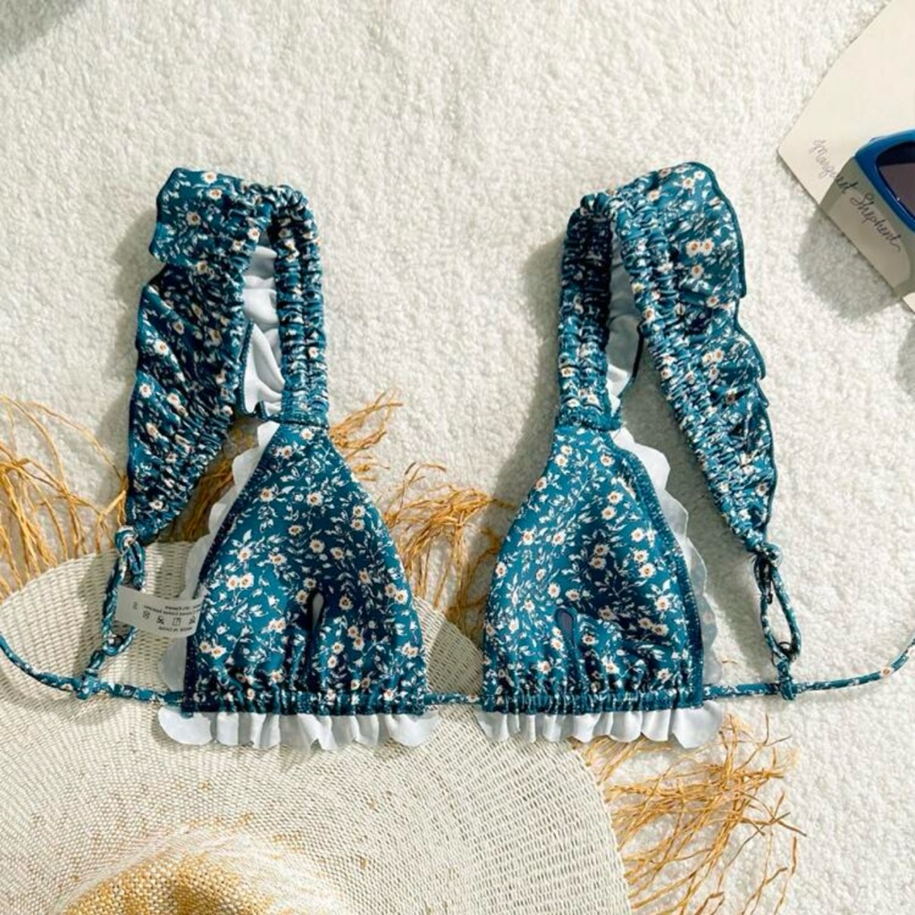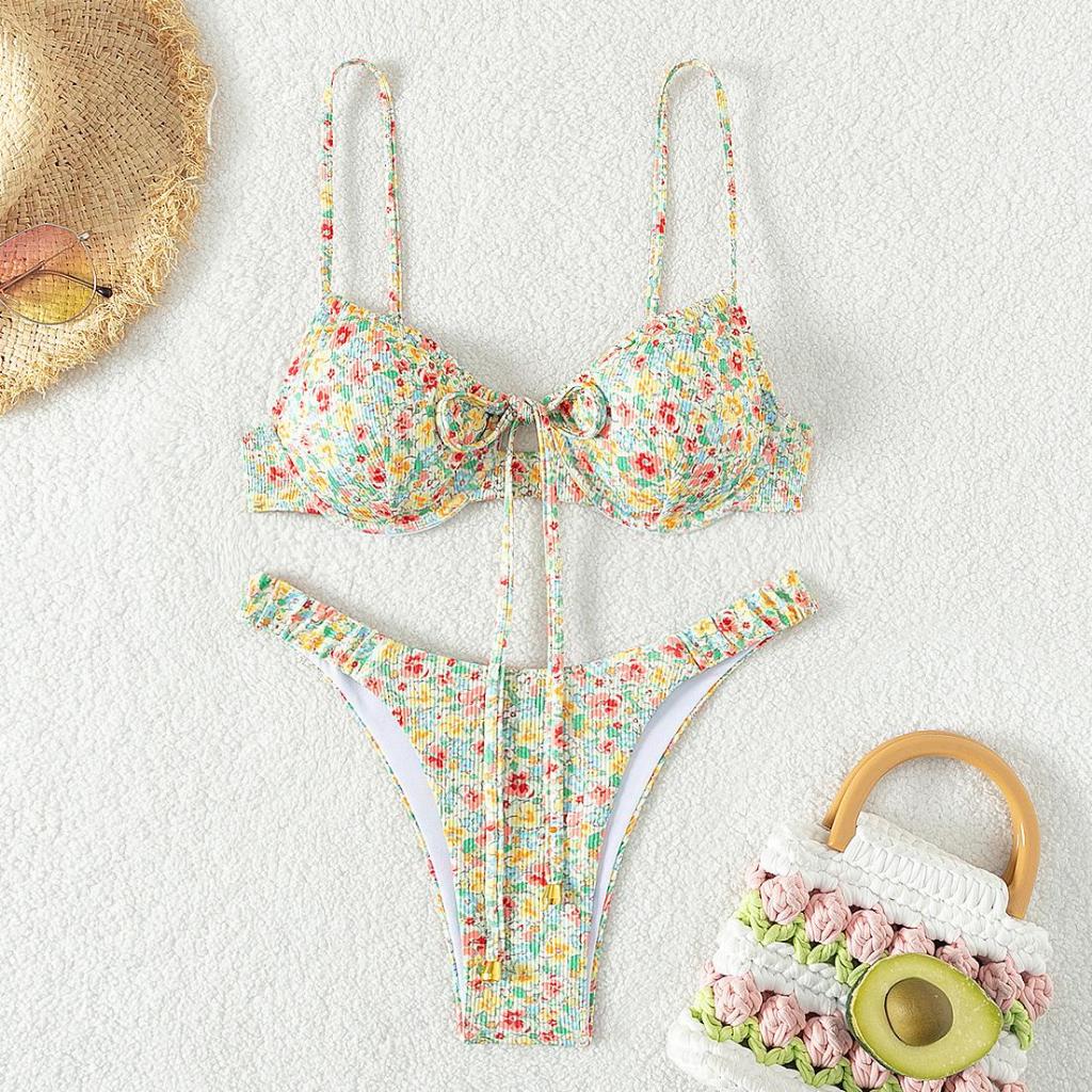 ??????? ??สินค้าพร้อมส่ง?? ????เสื้อบิกินี่ลายดอกไม้ขนาดเล็ก แต่งชายระบาย SW0991????