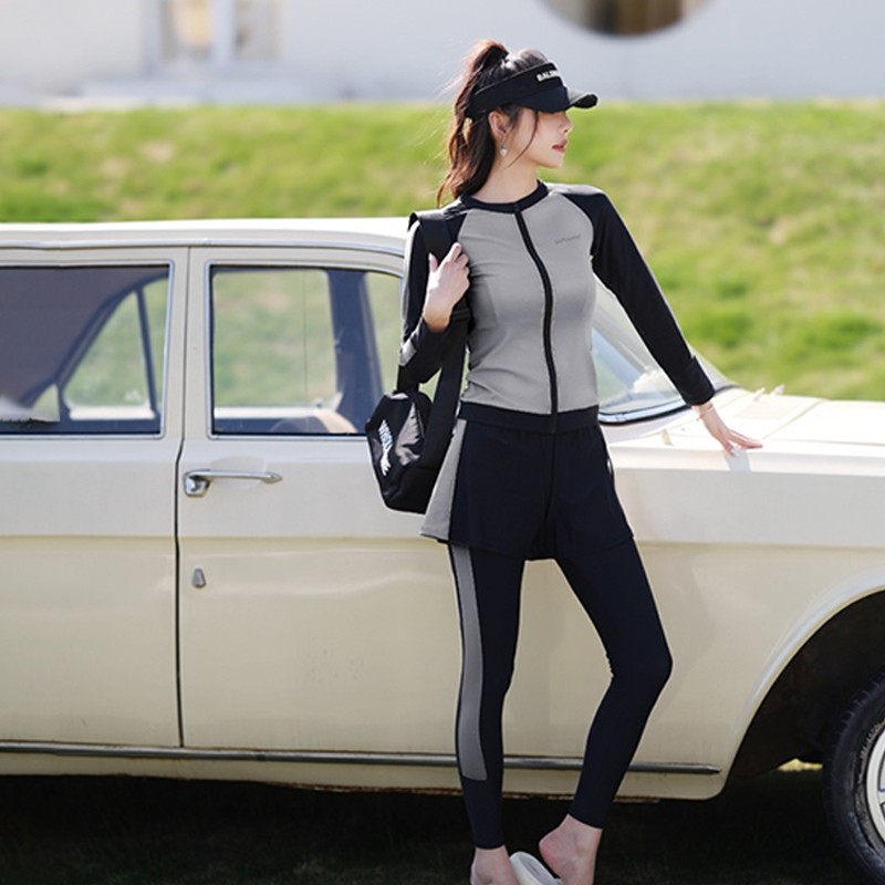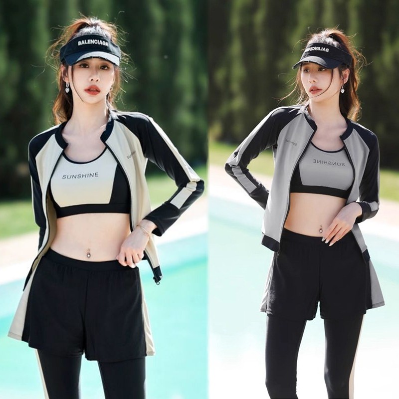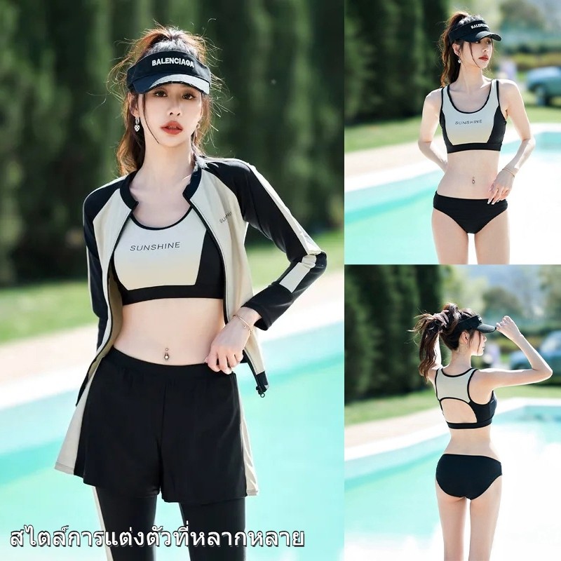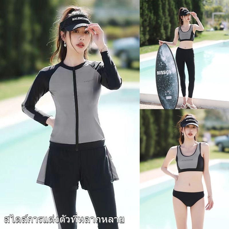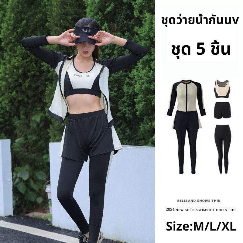 ??พร้อมส่งในไทย?? ชุดว่ายน้ำกันแดด ชุดดำน้ำ 5ชิ้น ชุดว่ายน้ำแขนยาว เสื้อ กันuv ผ้าแห้งเร็ว มีฟองน้ำ#0300