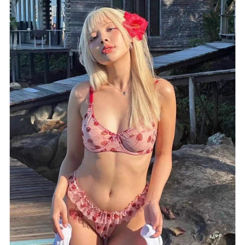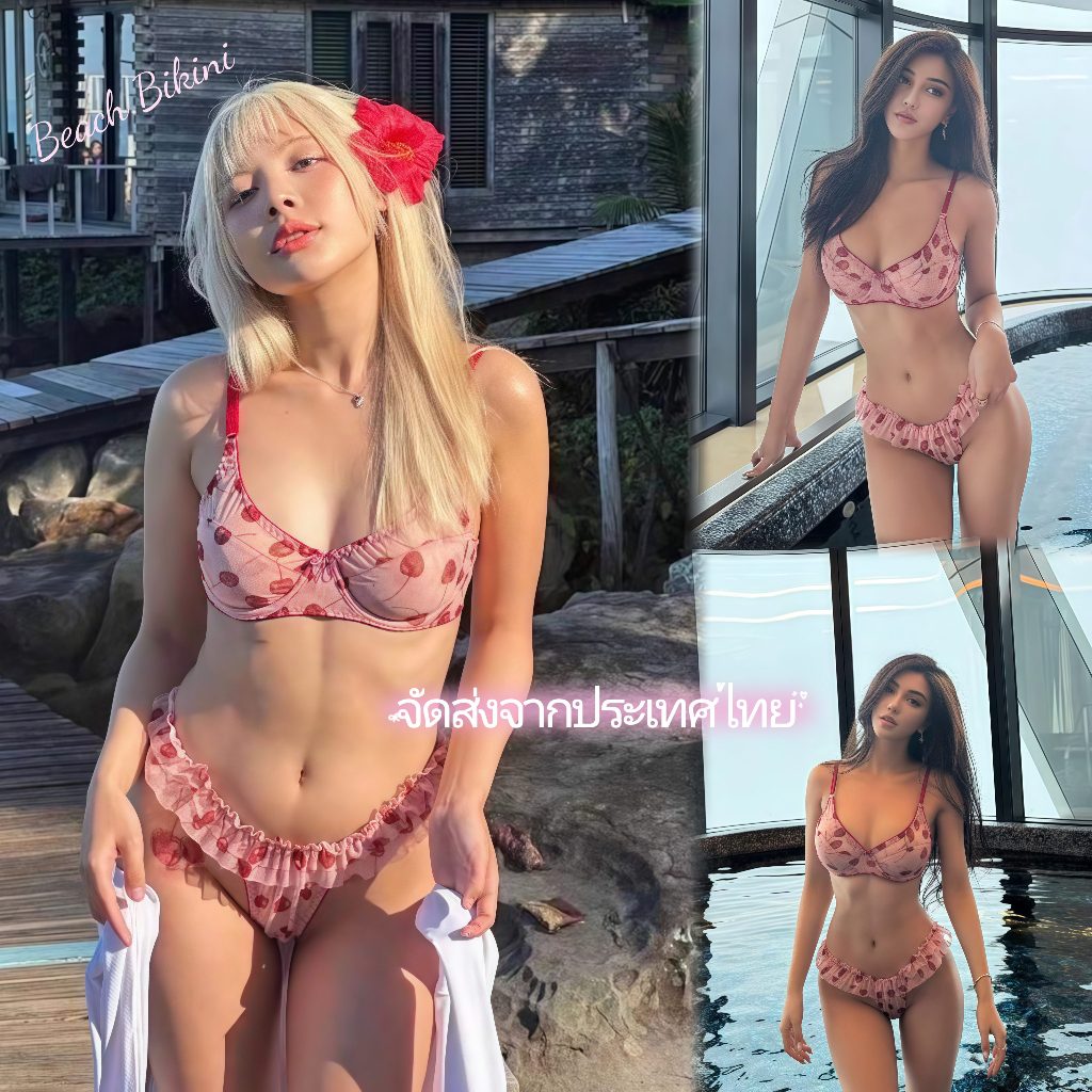 ?Beach Bikini?บิกินี่ ชุดว่ายน้ํา บิกินี่แซ่บ ลายดอกซากุระ ผ้าลูกไม้ มีโครงเหล็ก เหมาะกับไปทะเล