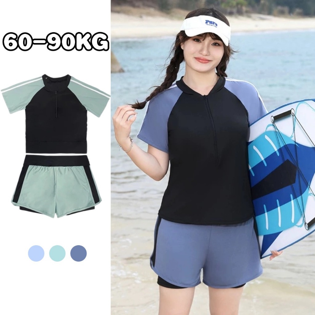 ?60-90KG?ชุดว่ายน้ําสาวอวบ ทูพีช ชุดว่ายน้ําผู้หญิง ขนาดใหญ่ เป็นยางยืด ใส่เที่ยวทะเลหรืออยู่บ้านชิลๆ