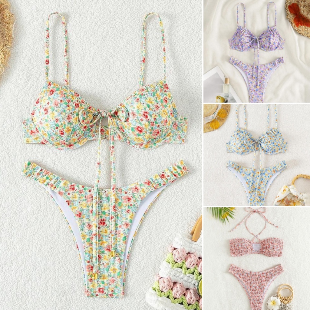 ?Basic swimsuit?บิกินี่ เซ็กซี่ ชุดว่ายน้ำแฟชั่น เซ็ต2ชิ้น ลายดอกไม้ หลากหลายสไตล์ให้เลือก ส่งไวจากไทย M-XL #0395