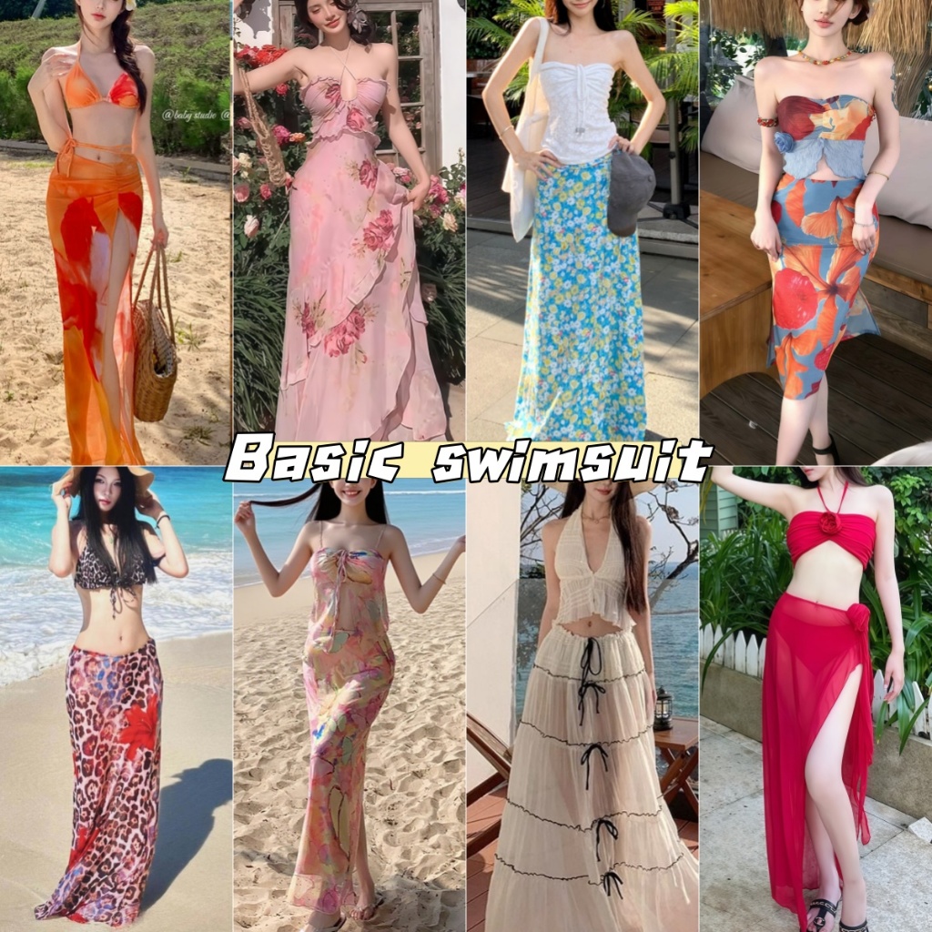 ?Basic swimsuit? แฟชั่น เดรสชายหาด เดรสยาว ลายดอกไม้ หลากหลายสไตล์ จัดส่งรวดเร็ว