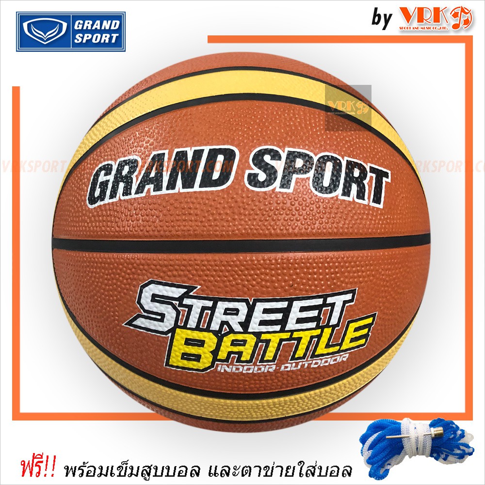Grand Sport บาสเกตบอล รุ่น Street Battle – บาสยาง เบอร์7(พร้อมเข็มสูบลมและตาข่ายใส่)